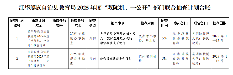 江华瑶族自治县教育局2025年“双随机、一公开”抽查计划