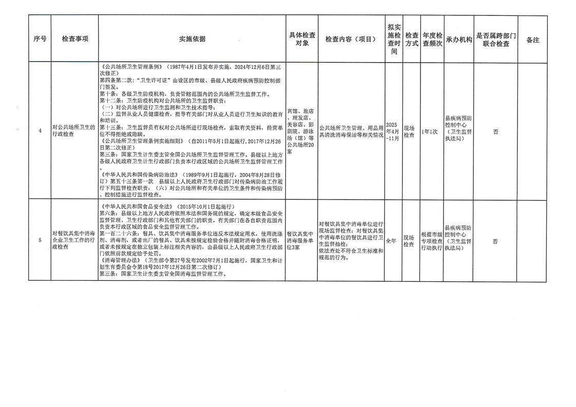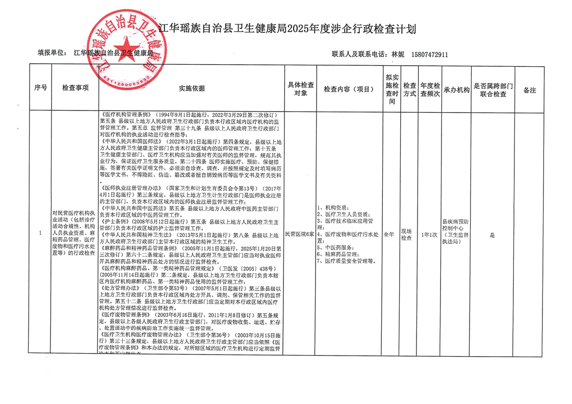 江华瑶族自治县卫生健康局涉企行政检查计划