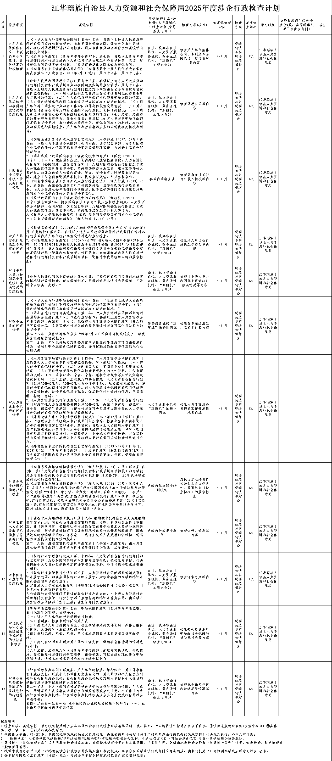 江华瑶族自治县人力资源和社会保障局2025年度涉企行政检查计划