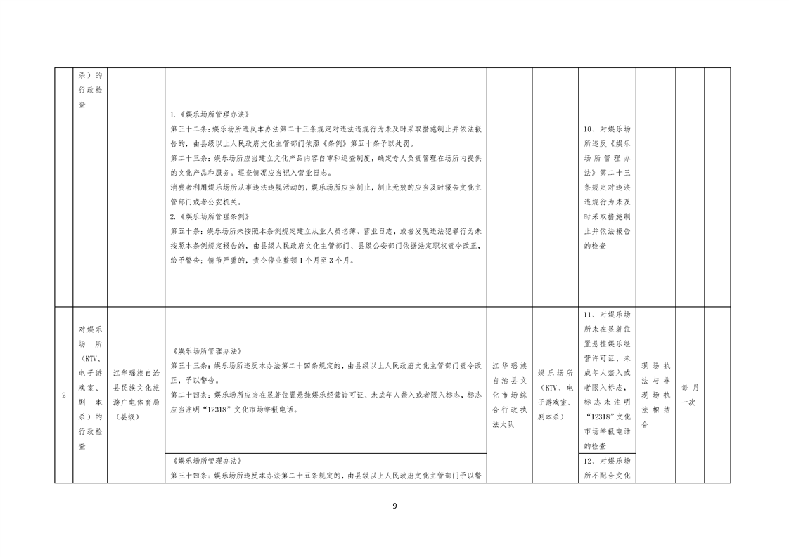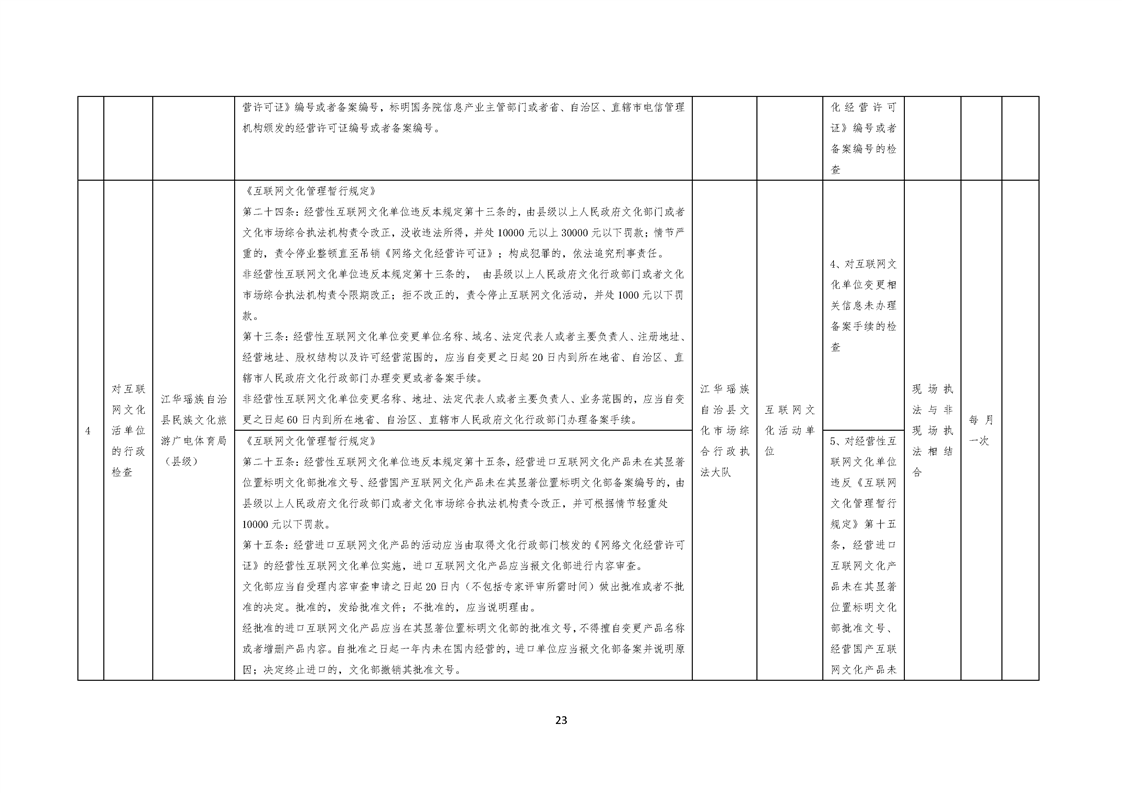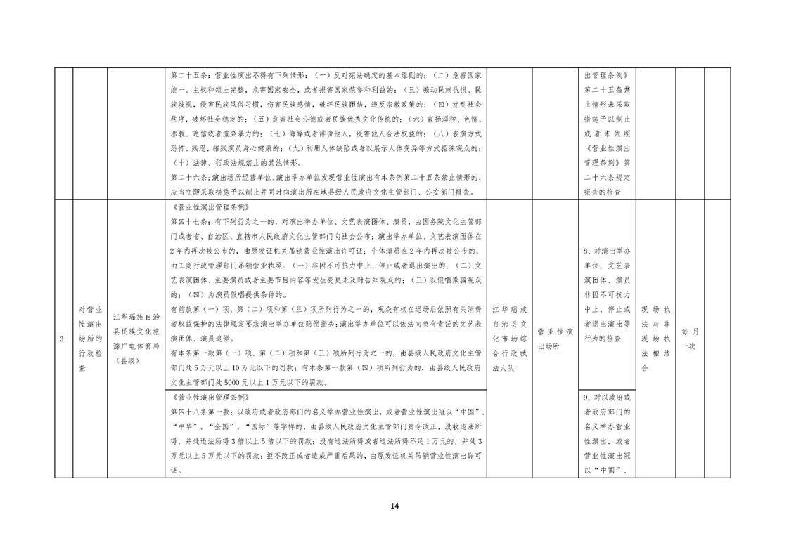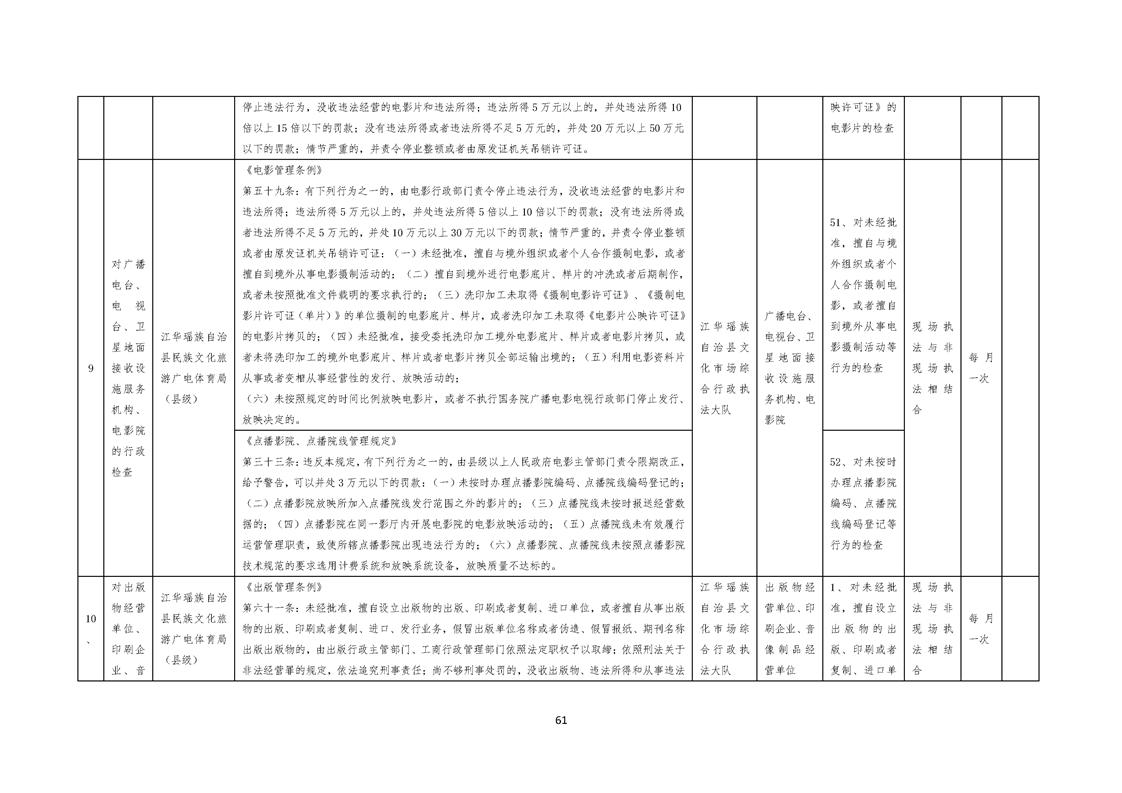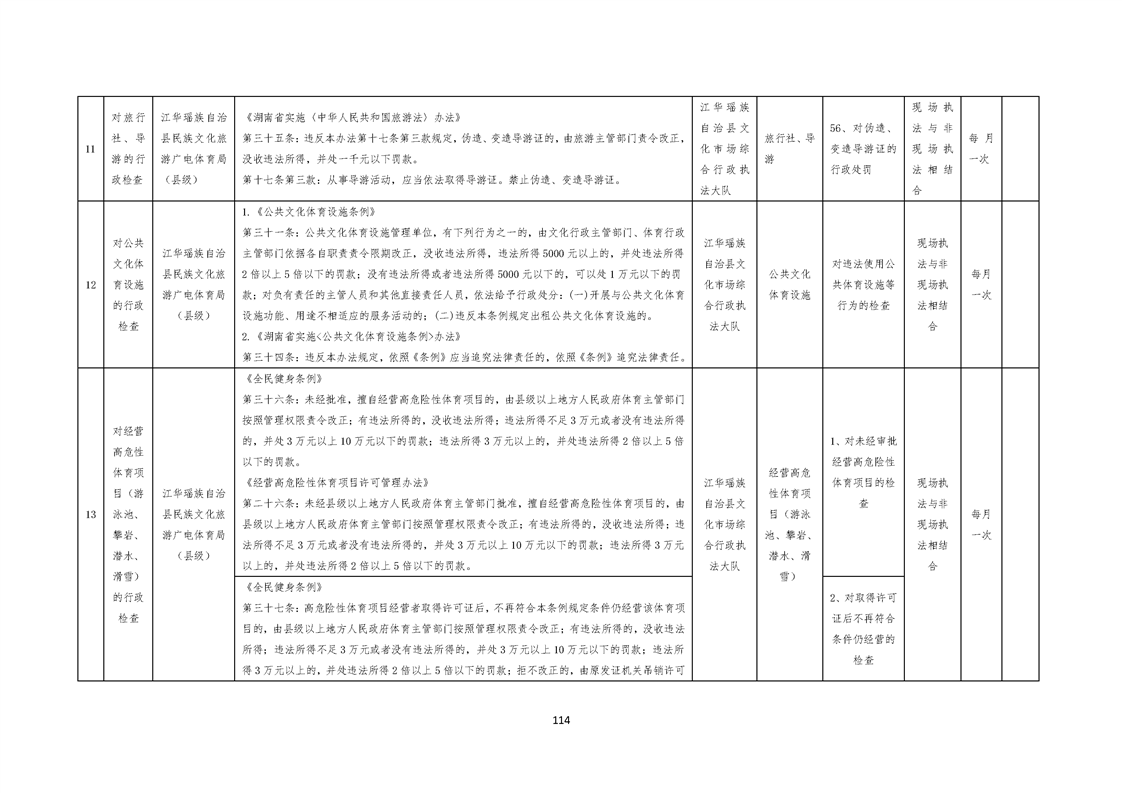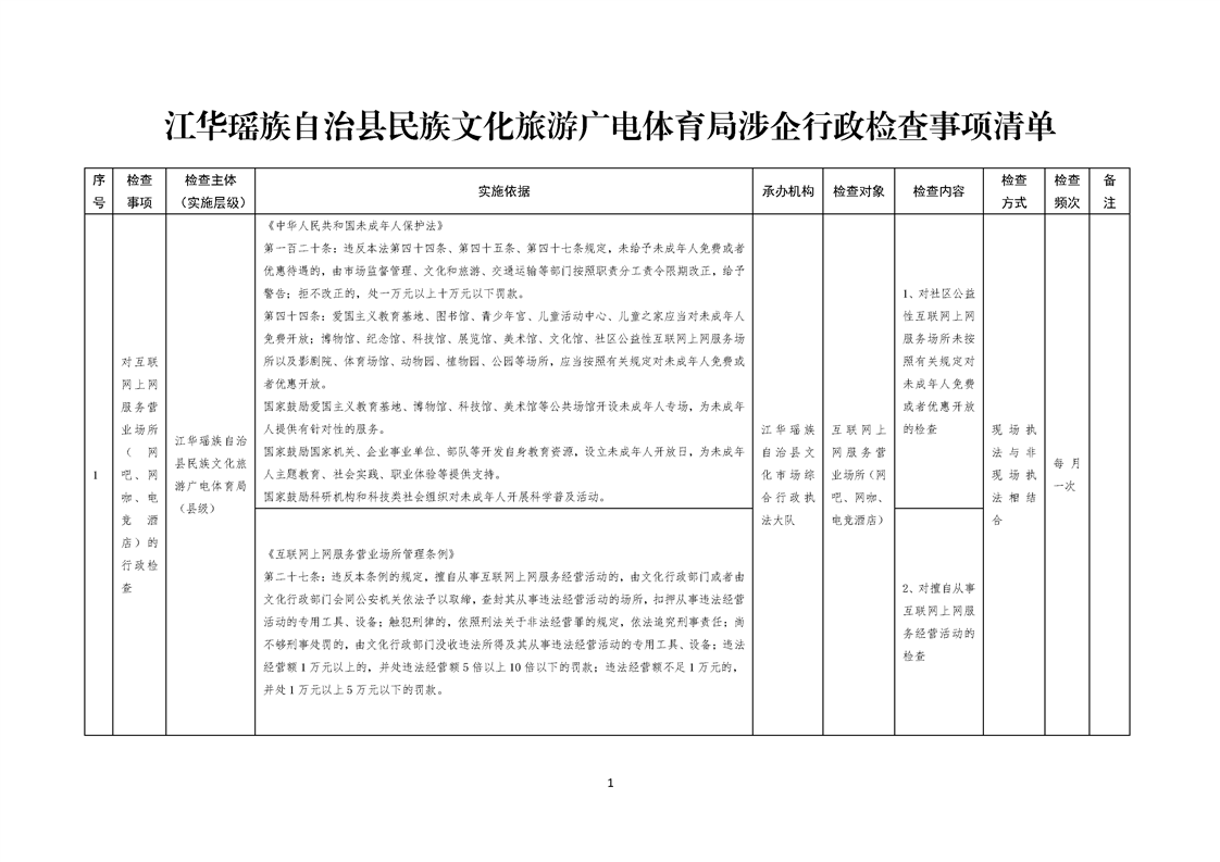 江华瑶族自治县民族文化旅游广电体育局涉企行政检查事项清单