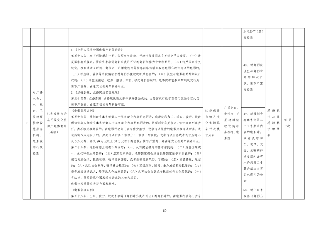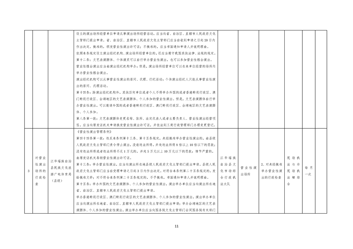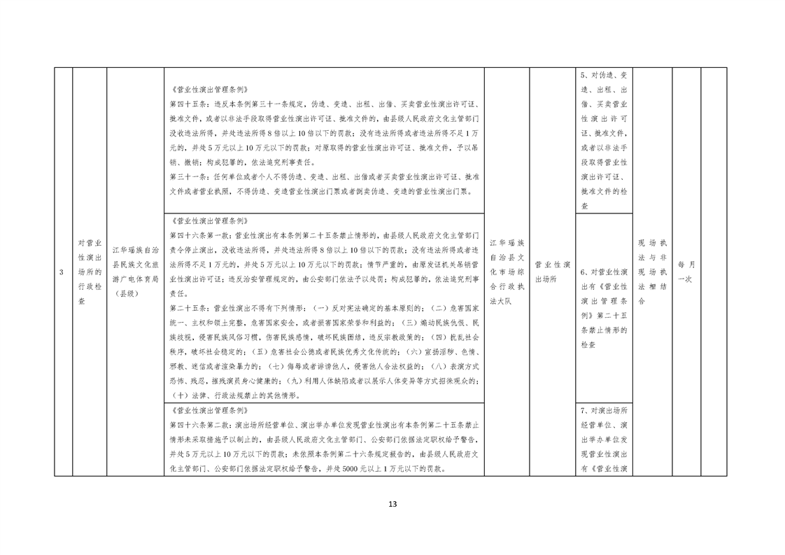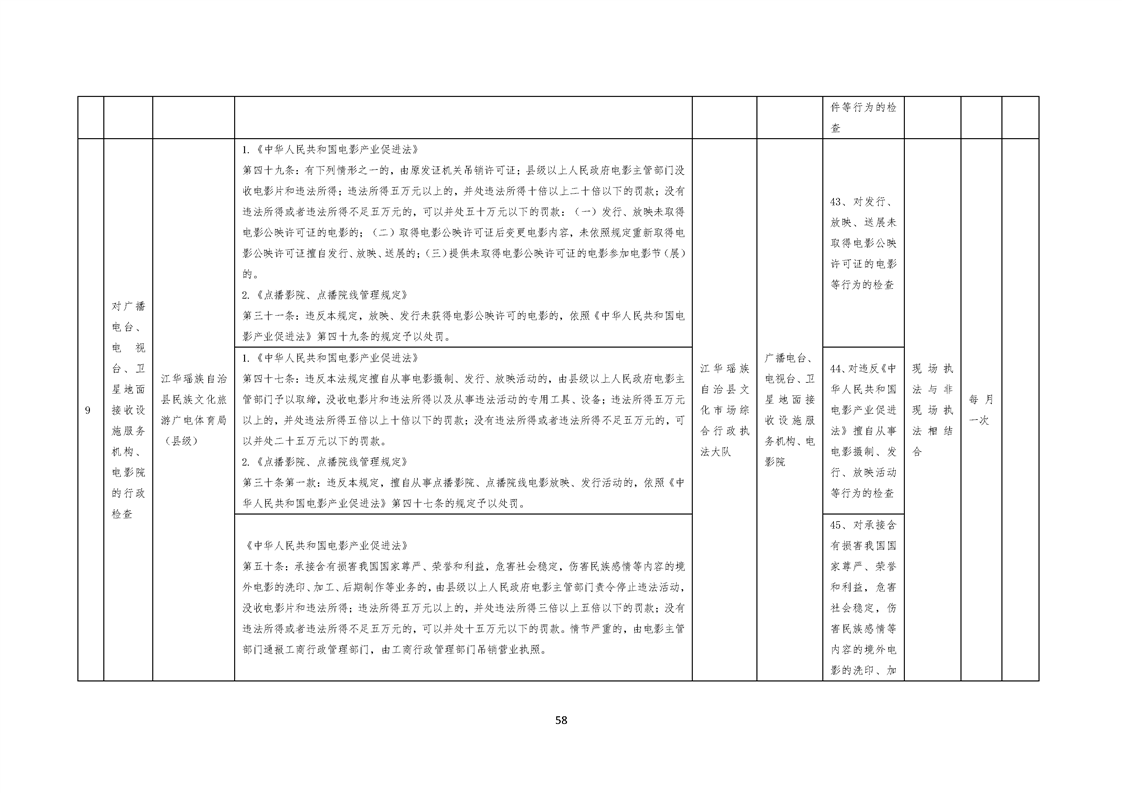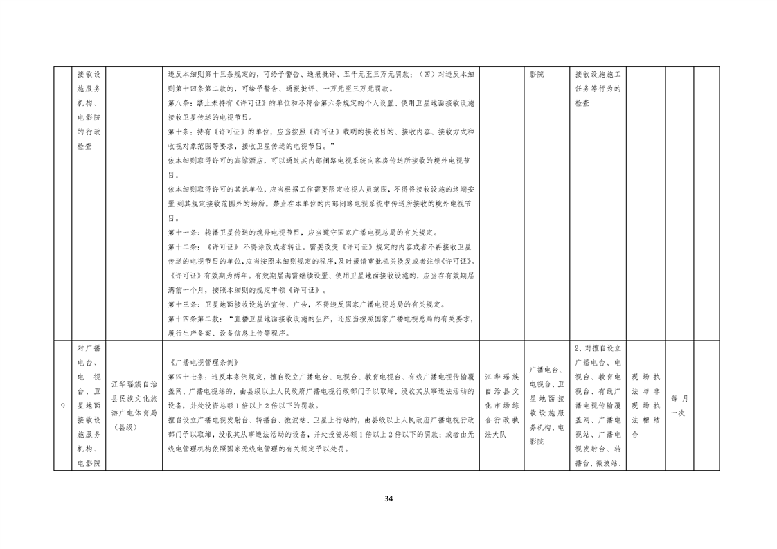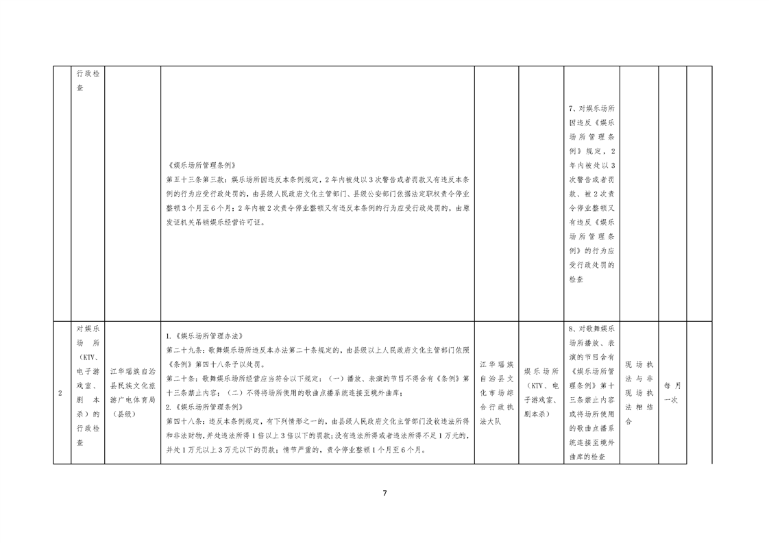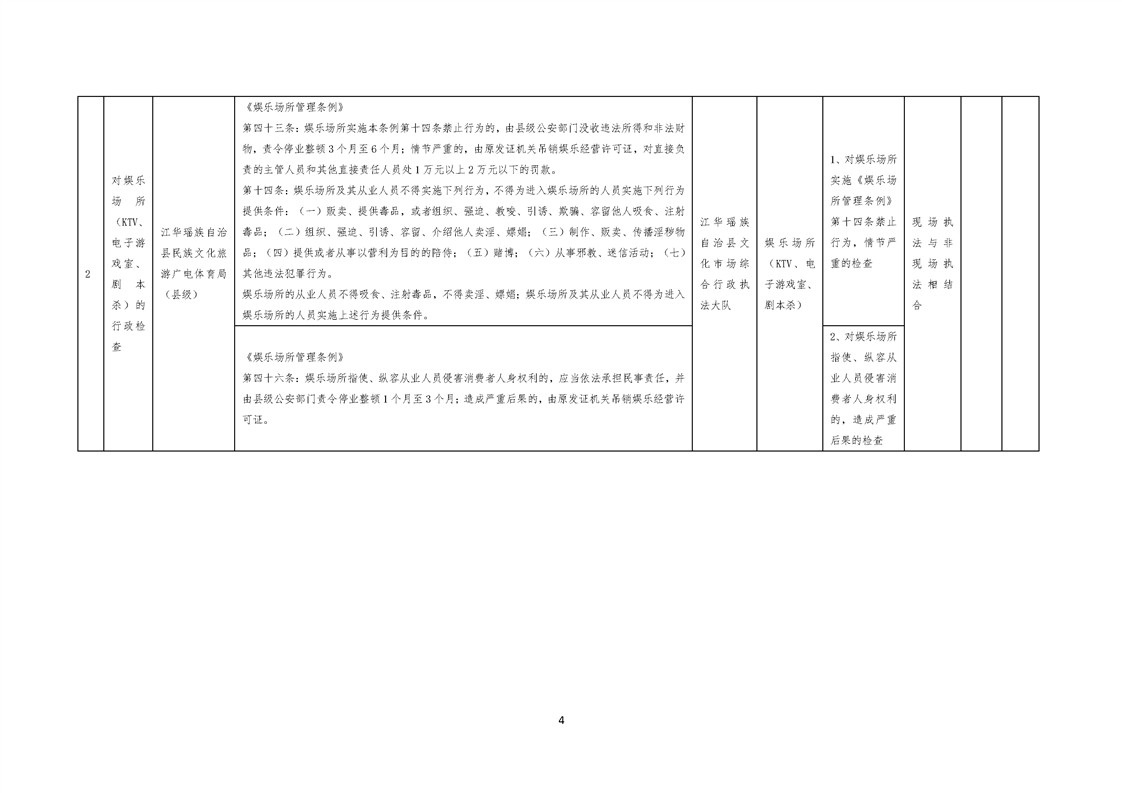 江华瑶族自治县民族文化旅游广电体育局涉企行政检查事项清单