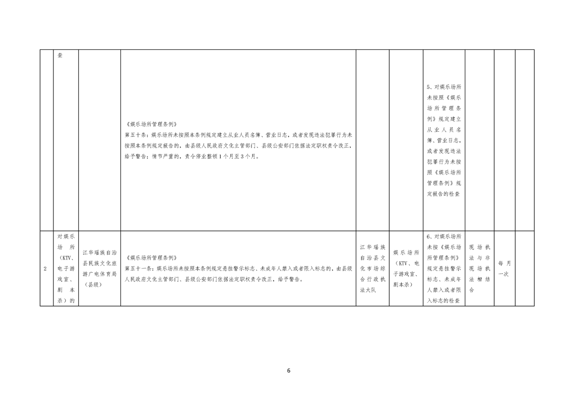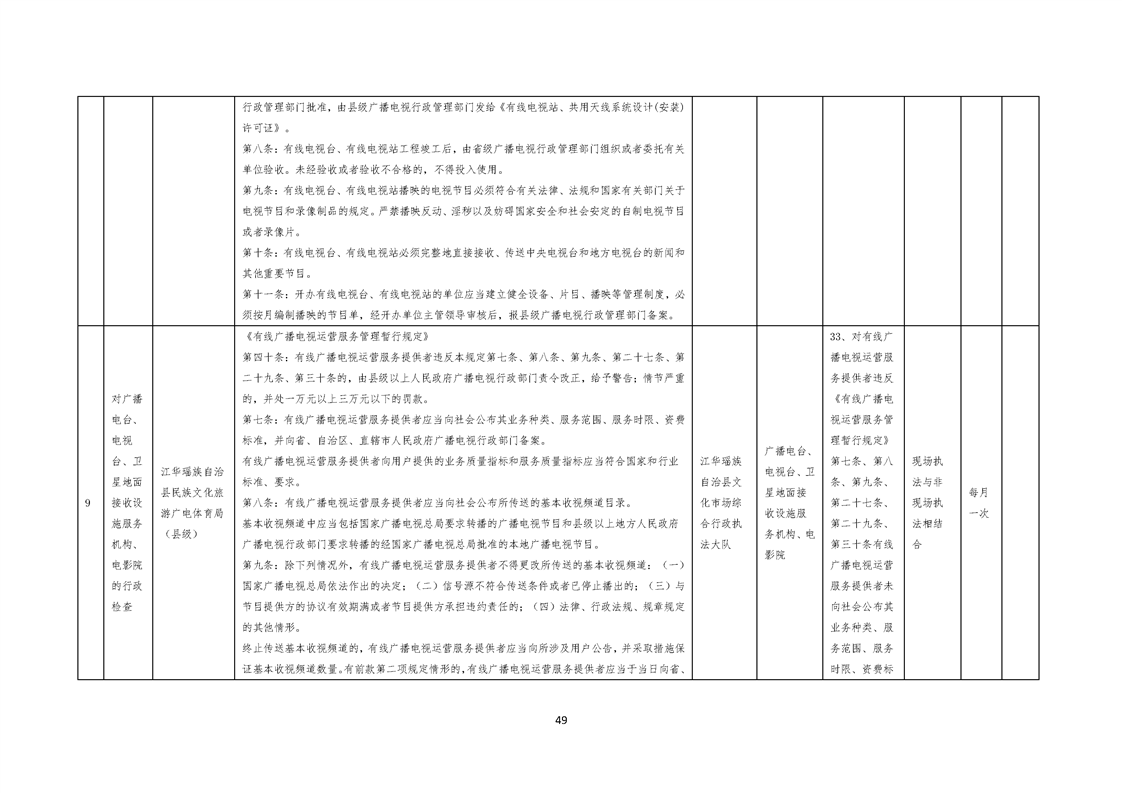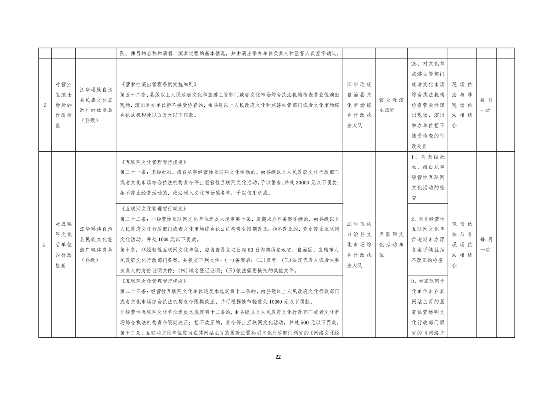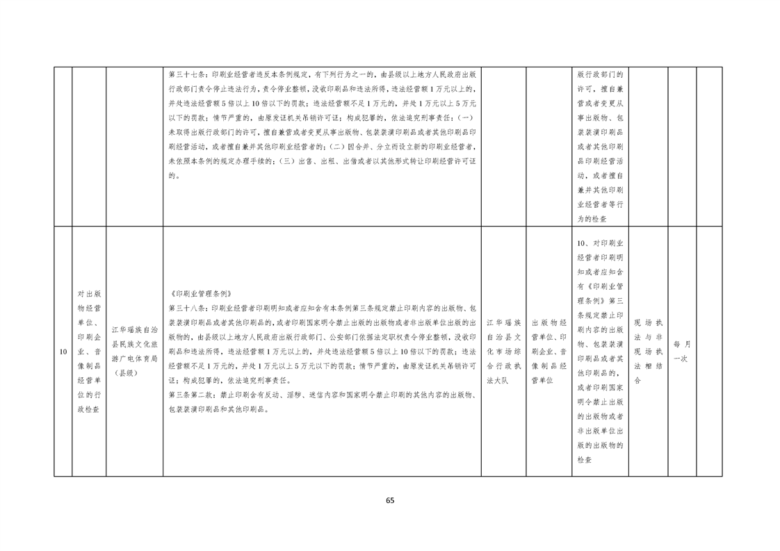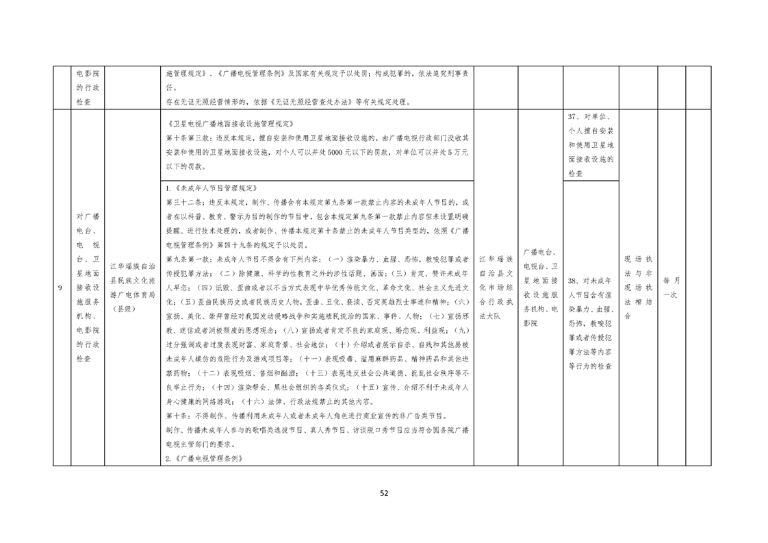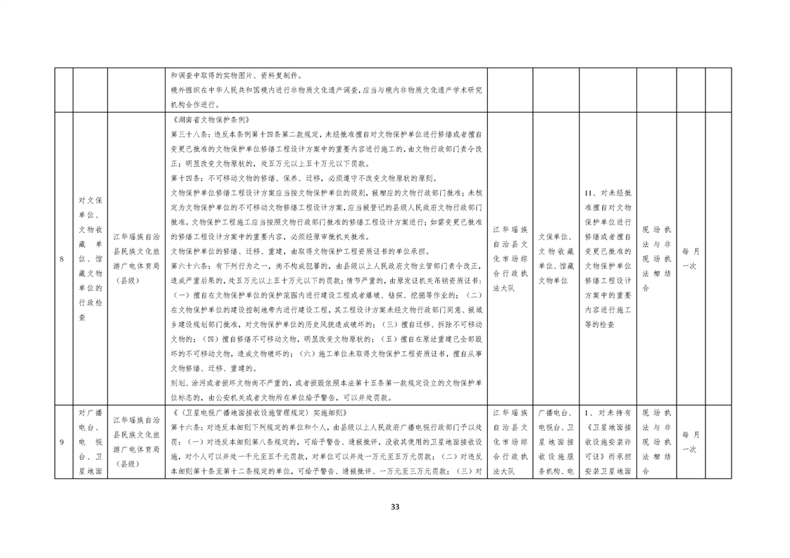 江华瑶族自治县民族文化旅游广电体育局涉企行政检查事项清单