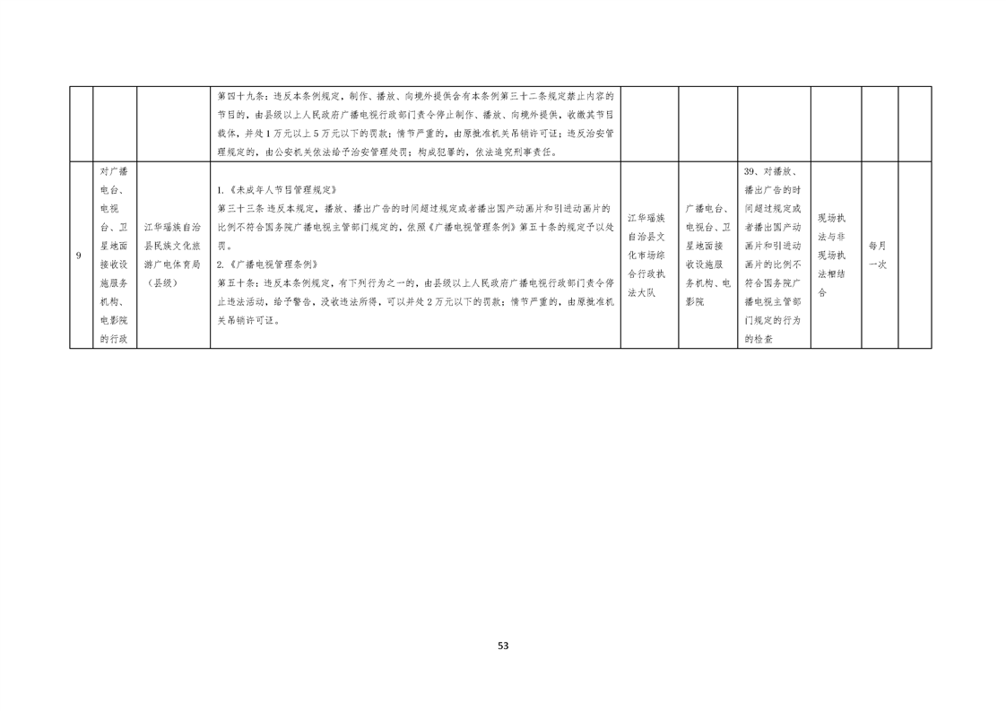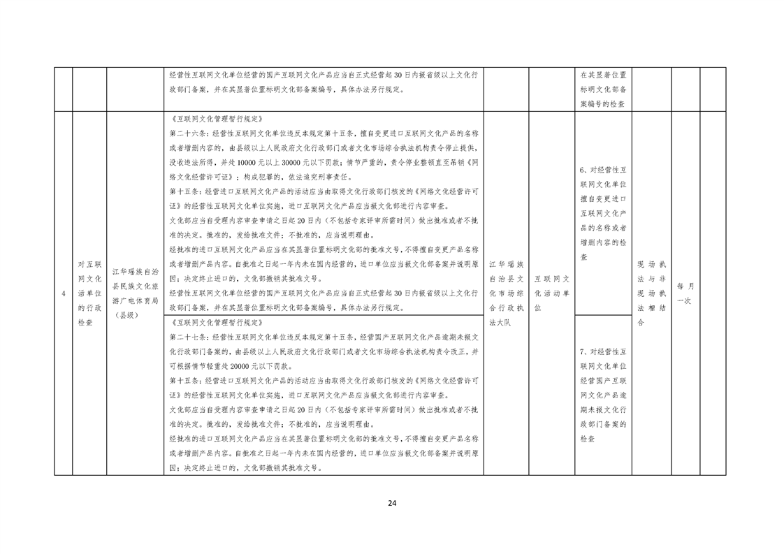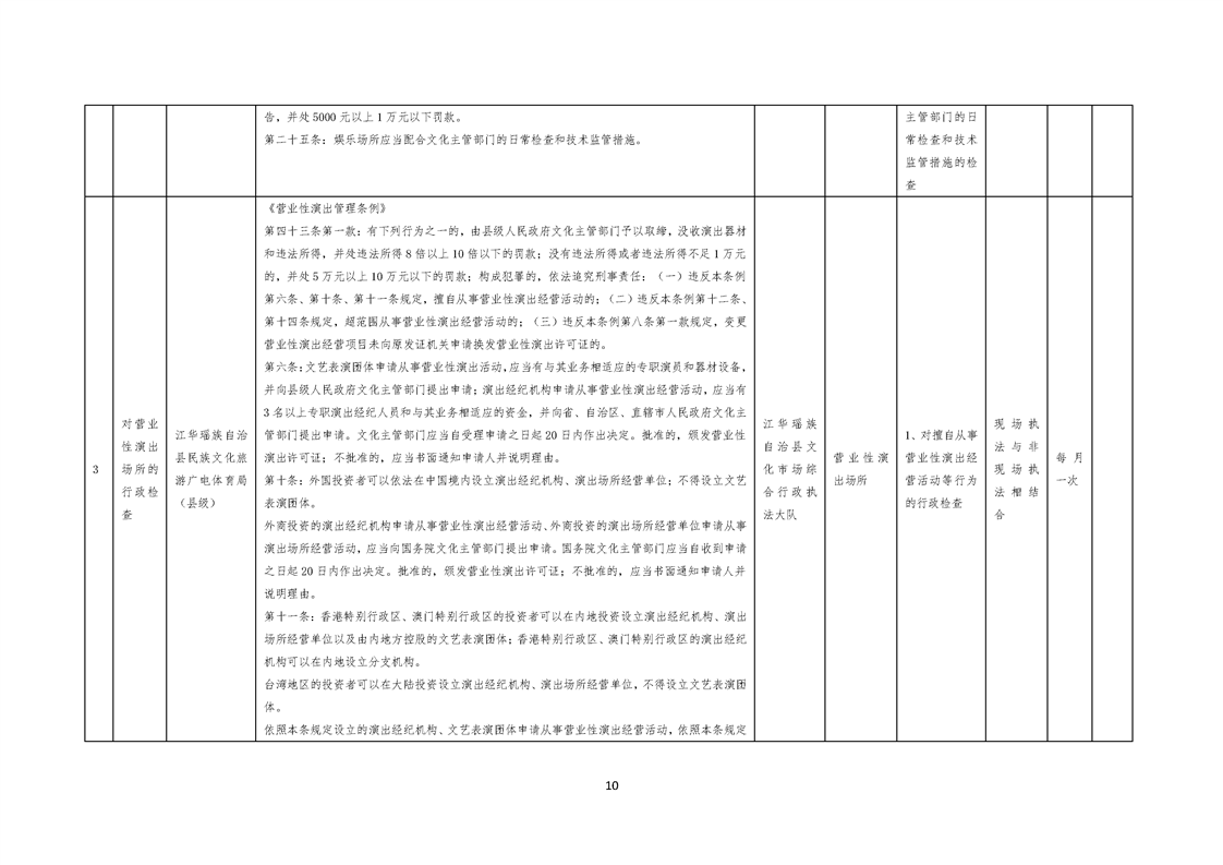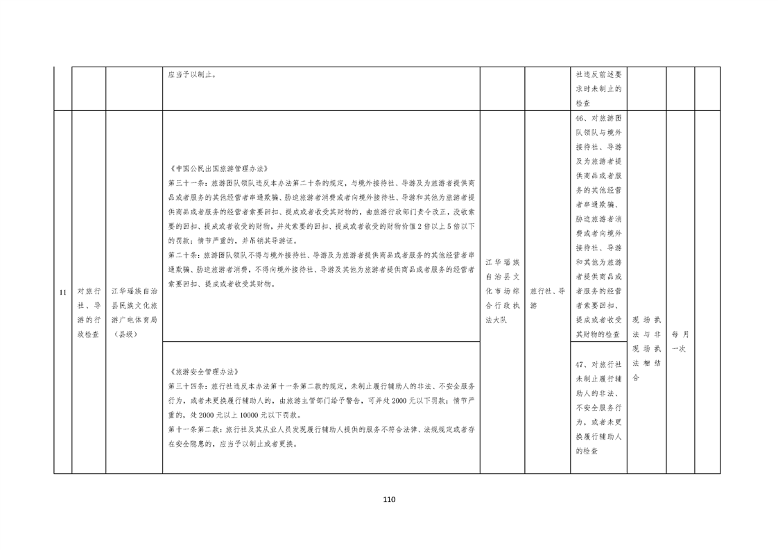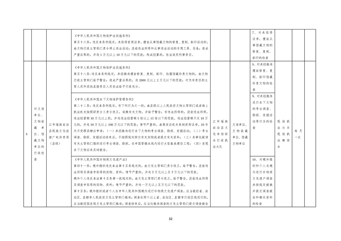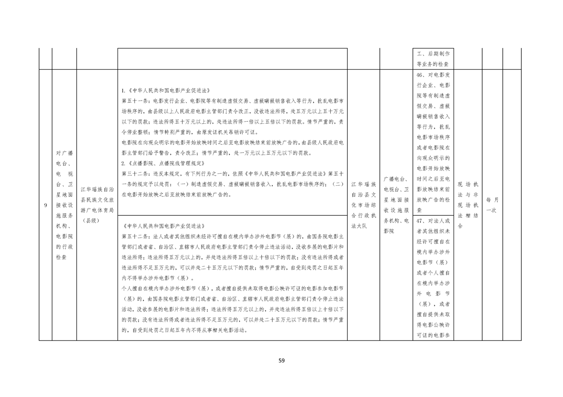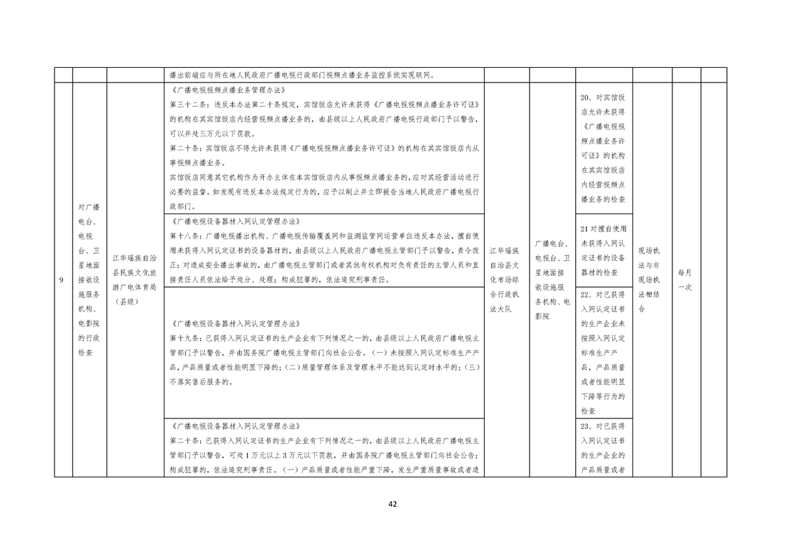 江华瑶族自治县民族文化旅游广电体育局涉企行政检查事项清单