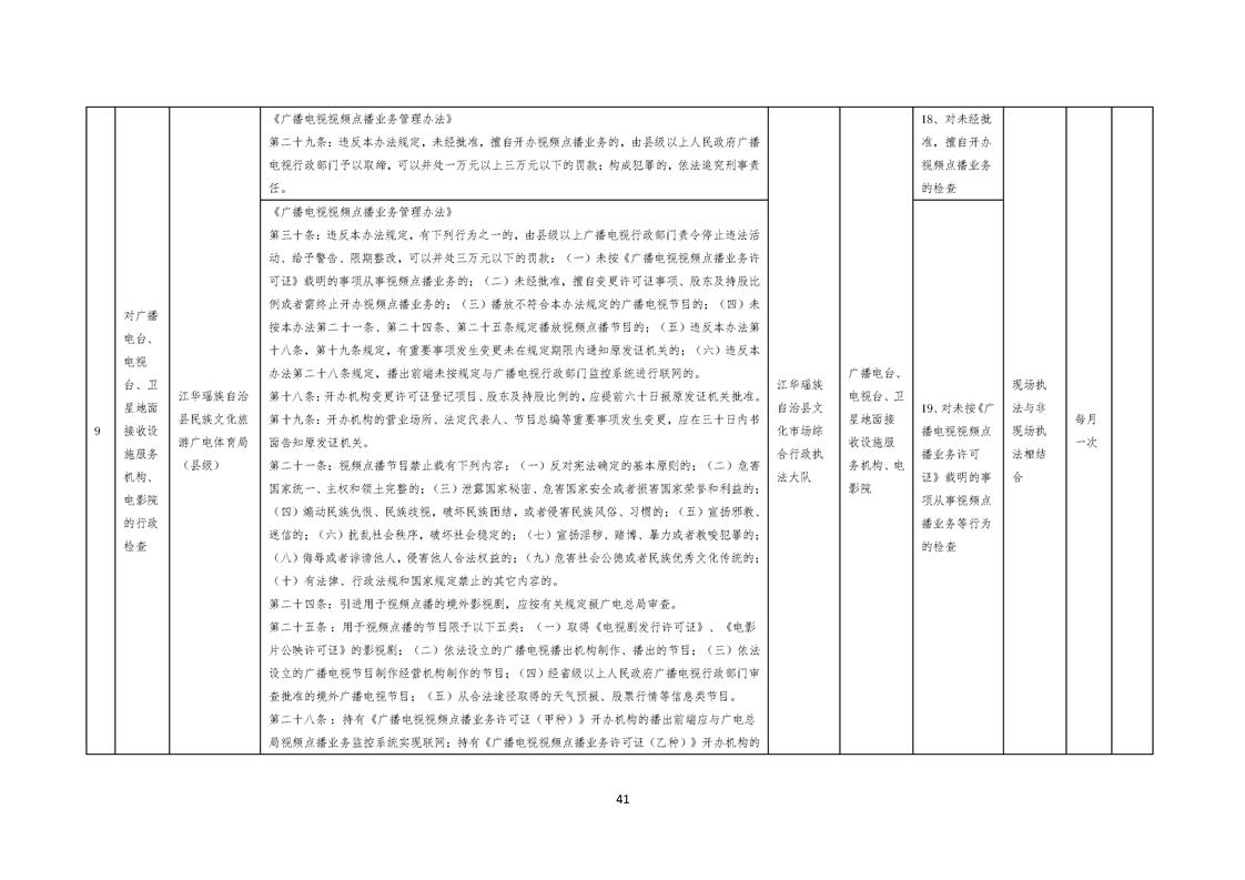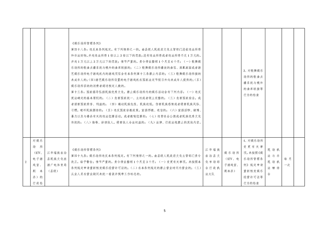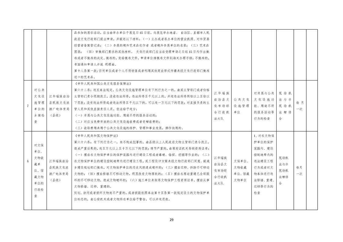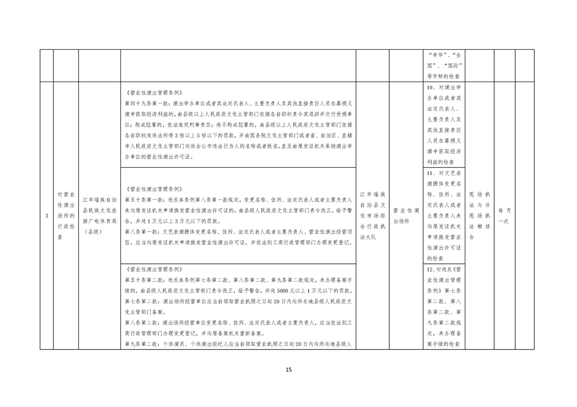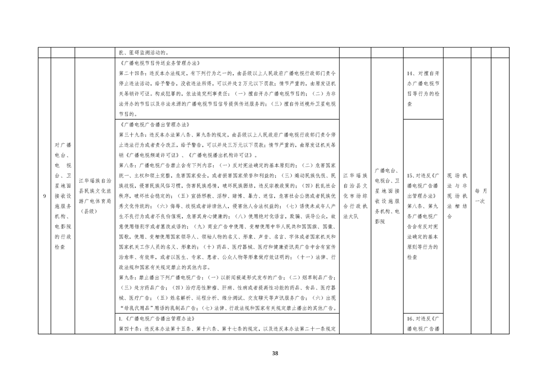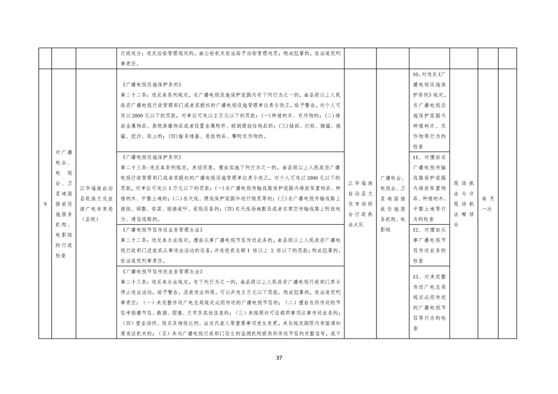 江华瑶族自治县民族文化旅游广电体育局涉企行政检查事项清单