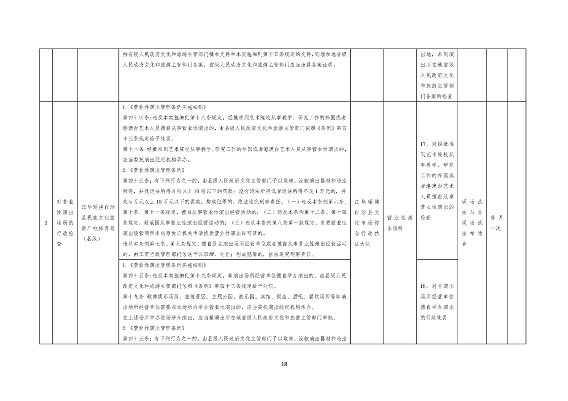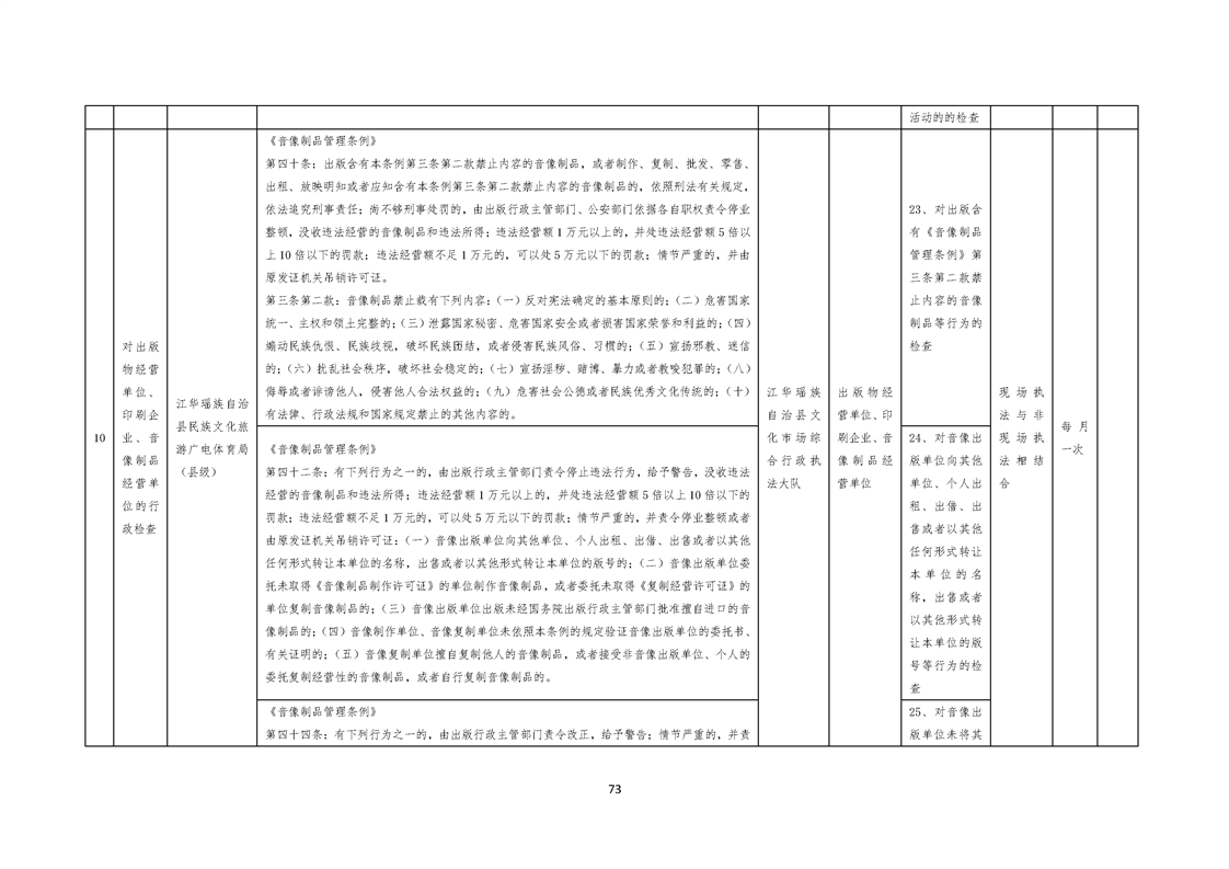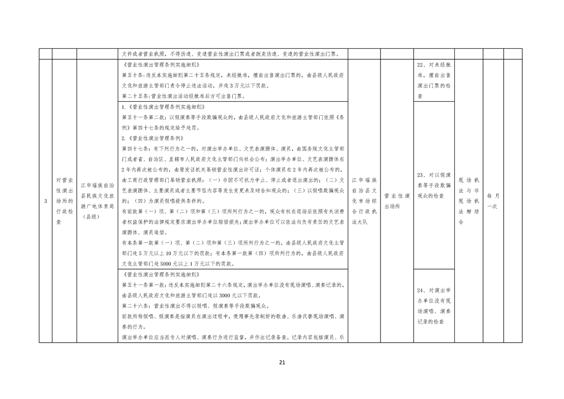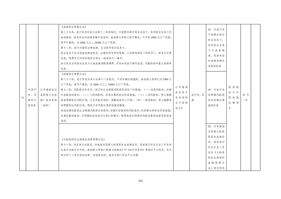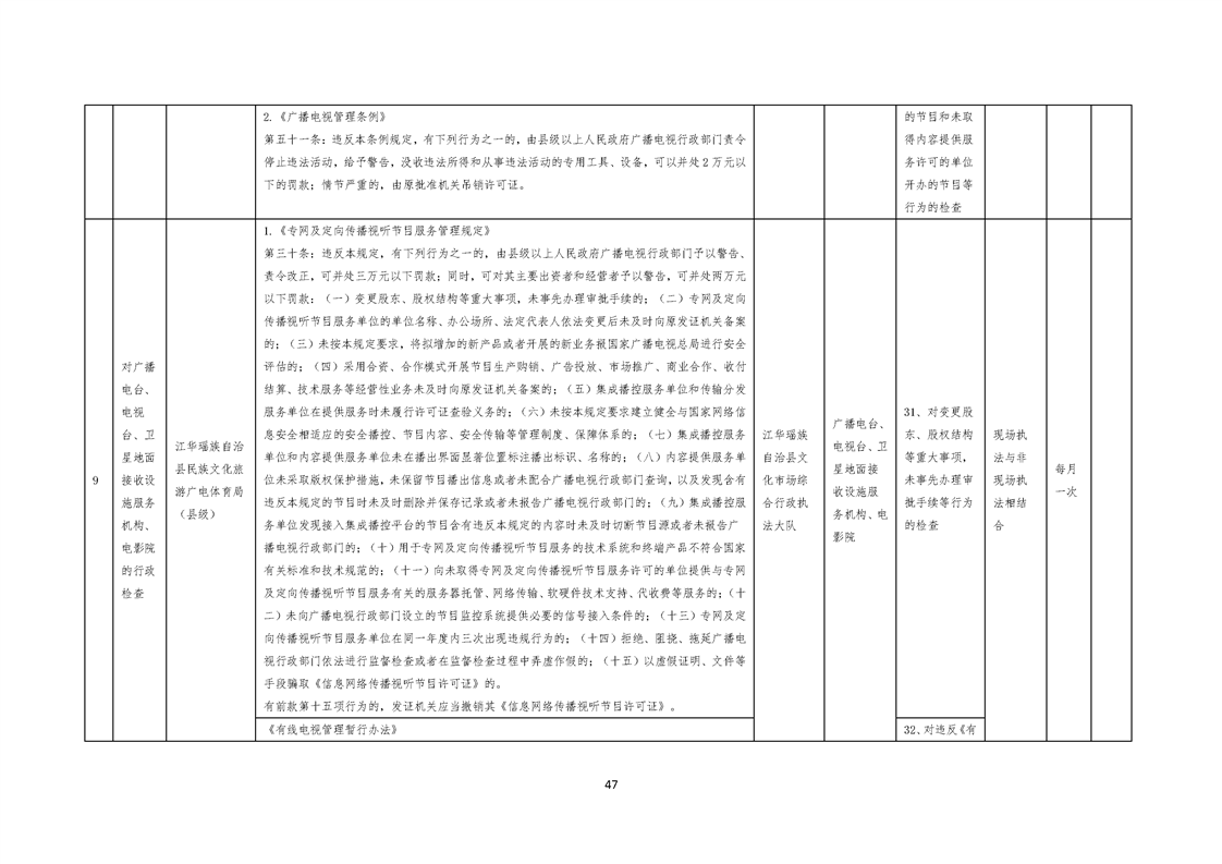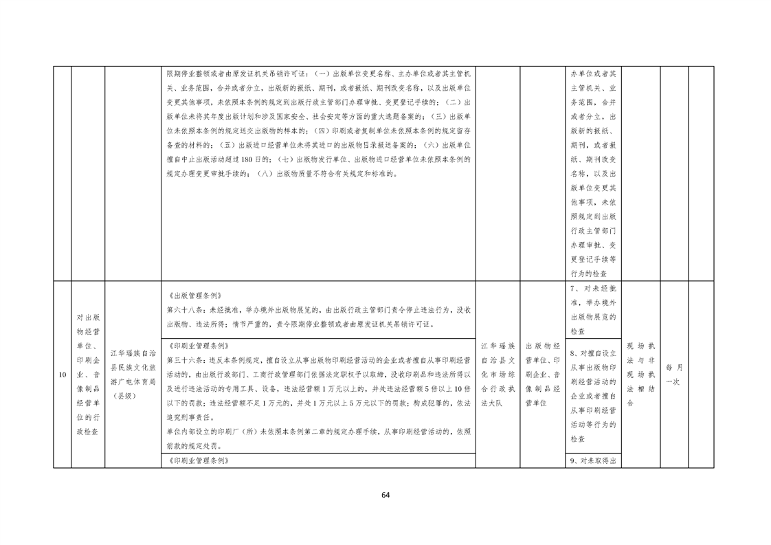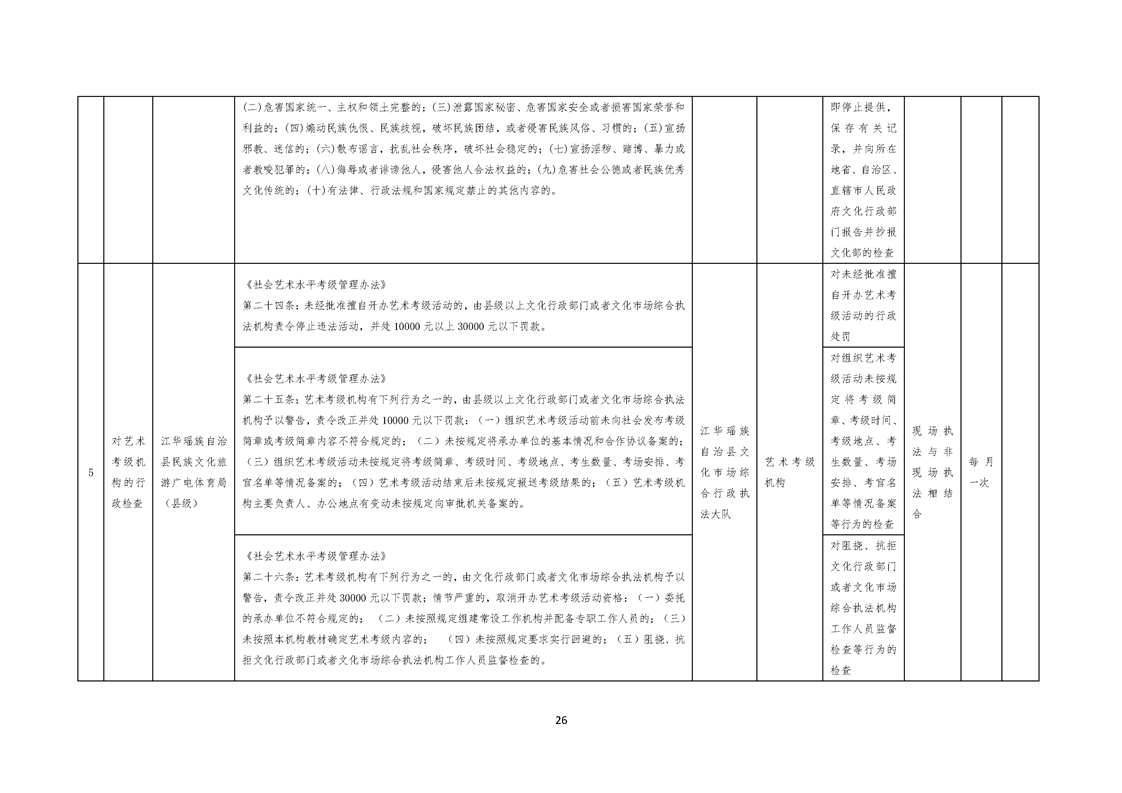 江华瑶族自治县民族文化旅游广电体育局涉企行政检查事项清单