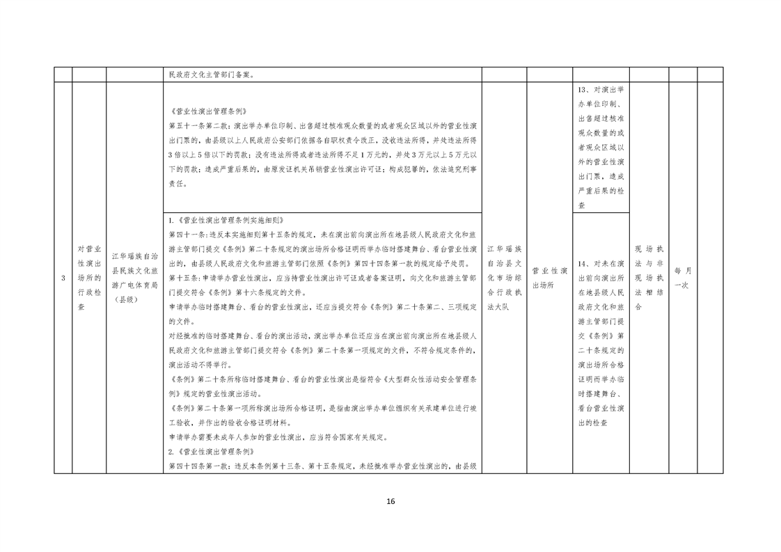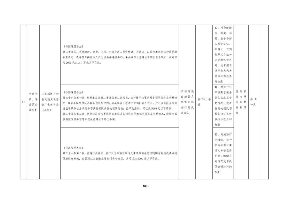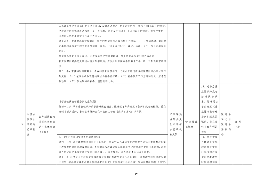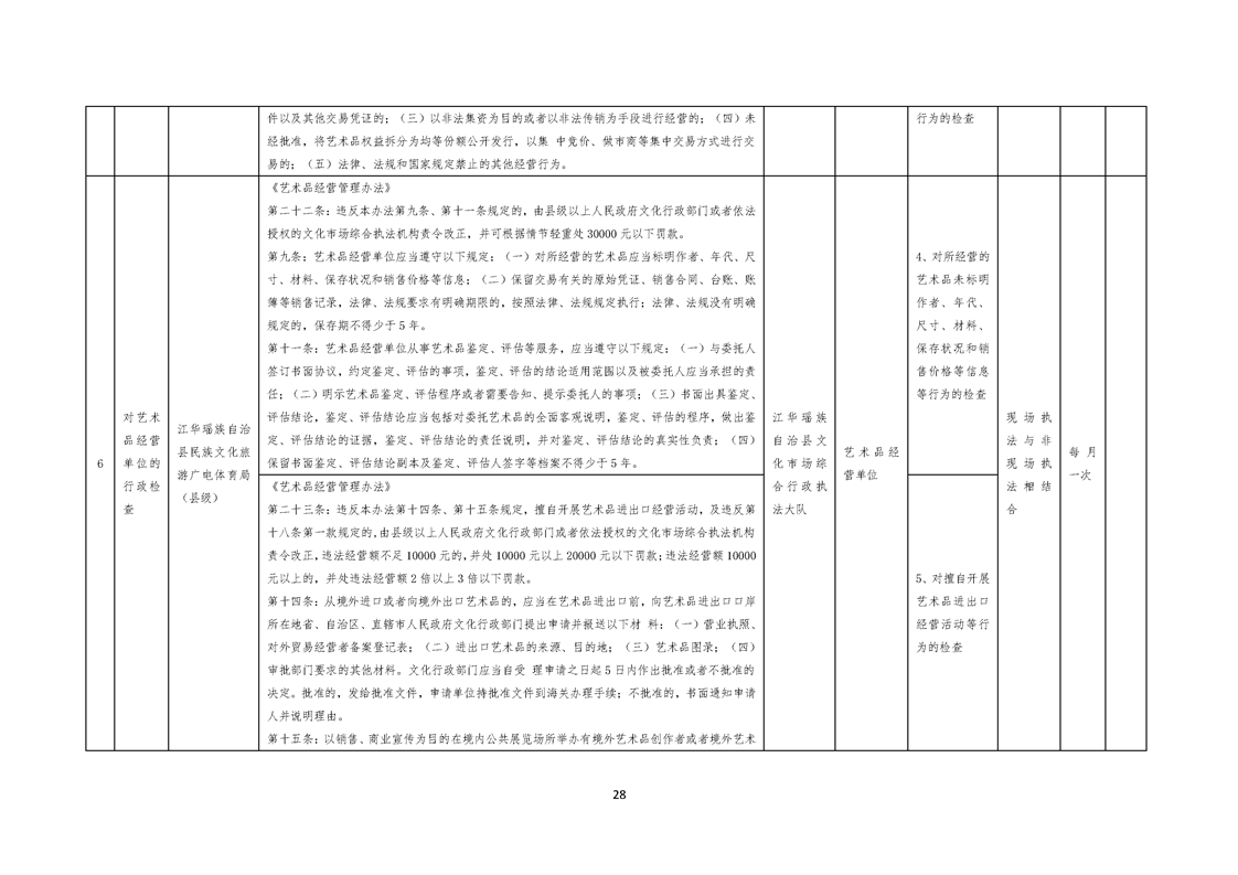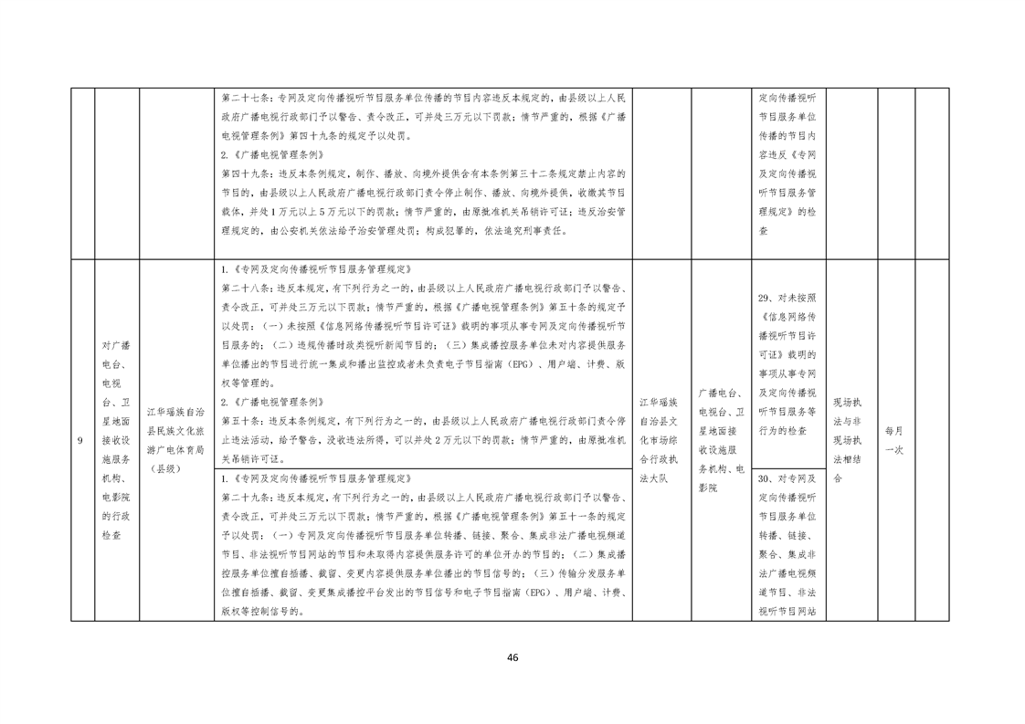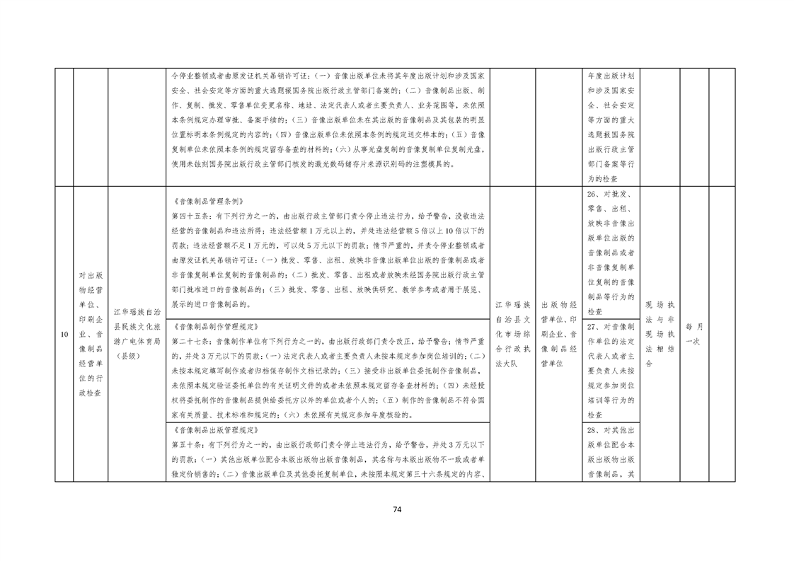 江华瑶族自治县民族文化旅游广电体育局涉企行政检查事项清单
