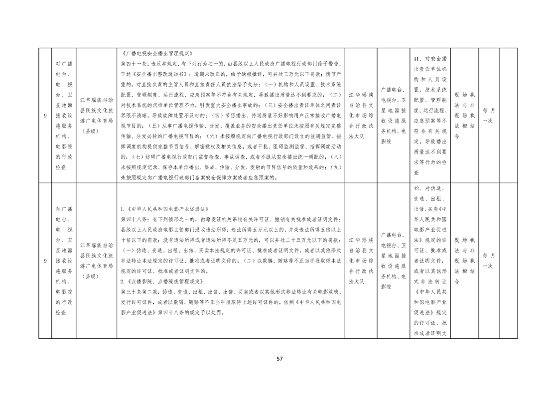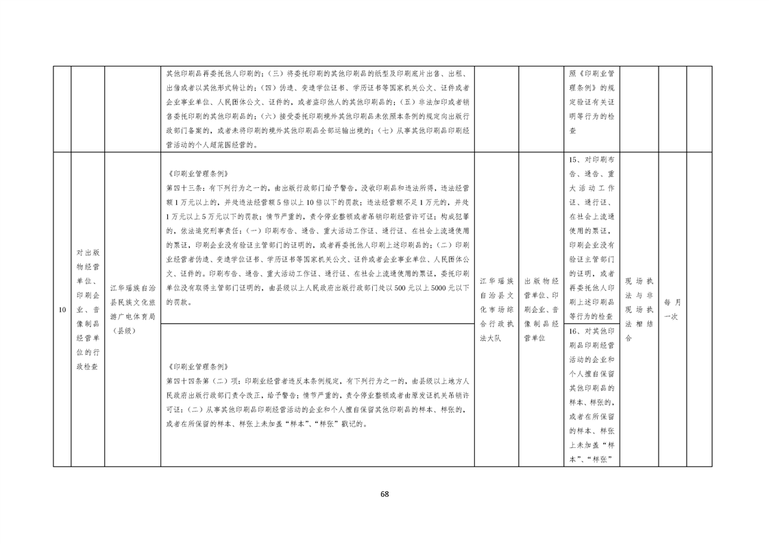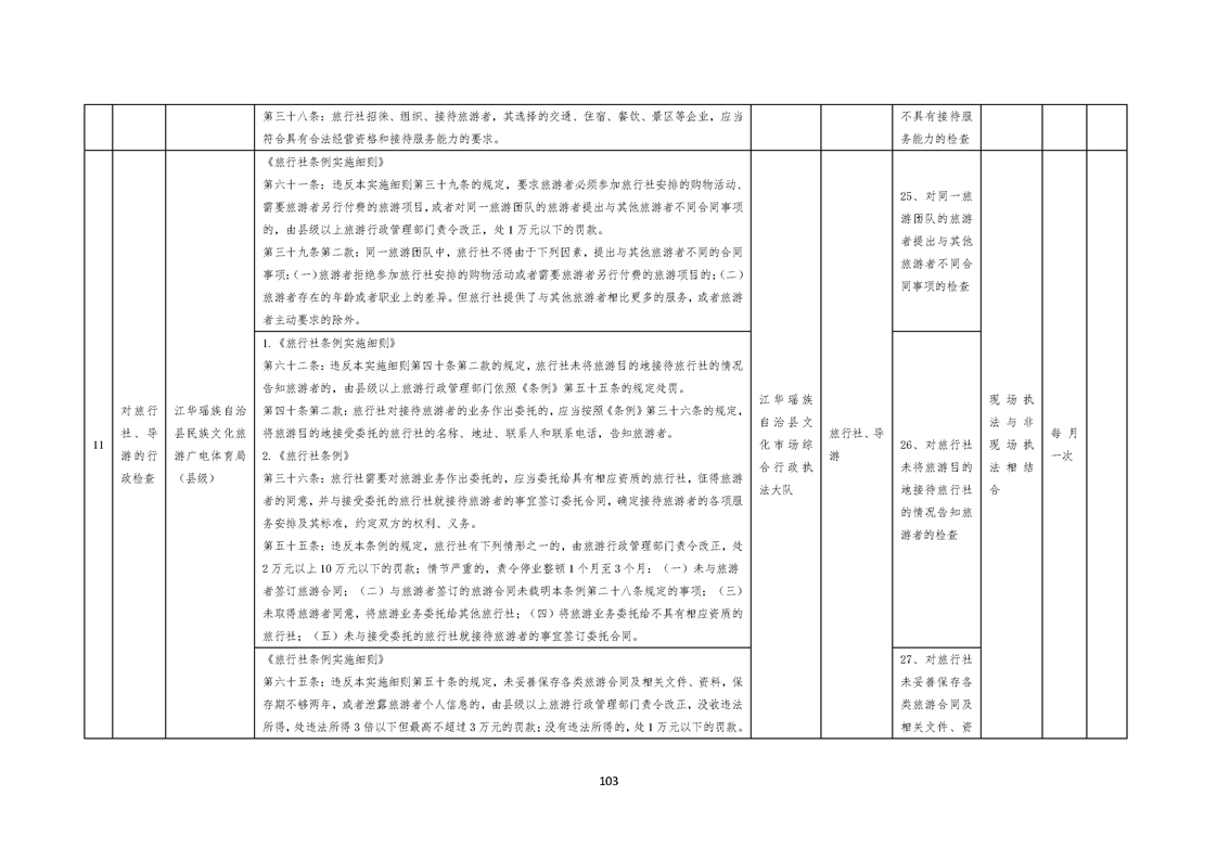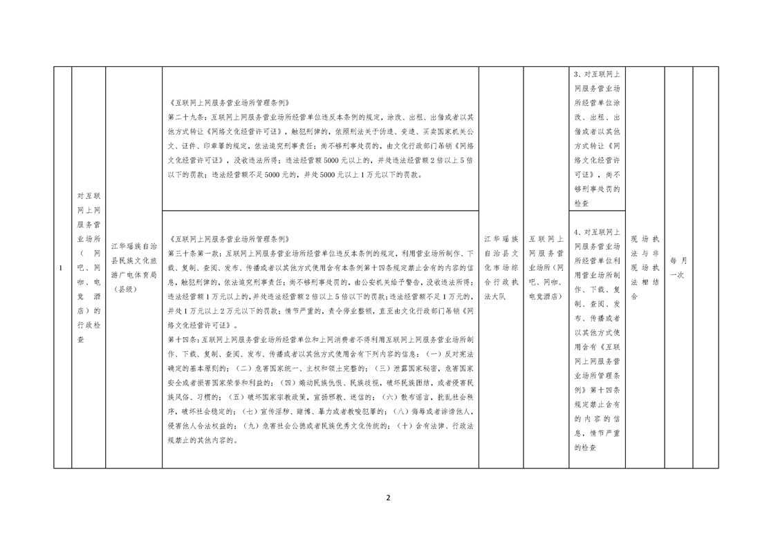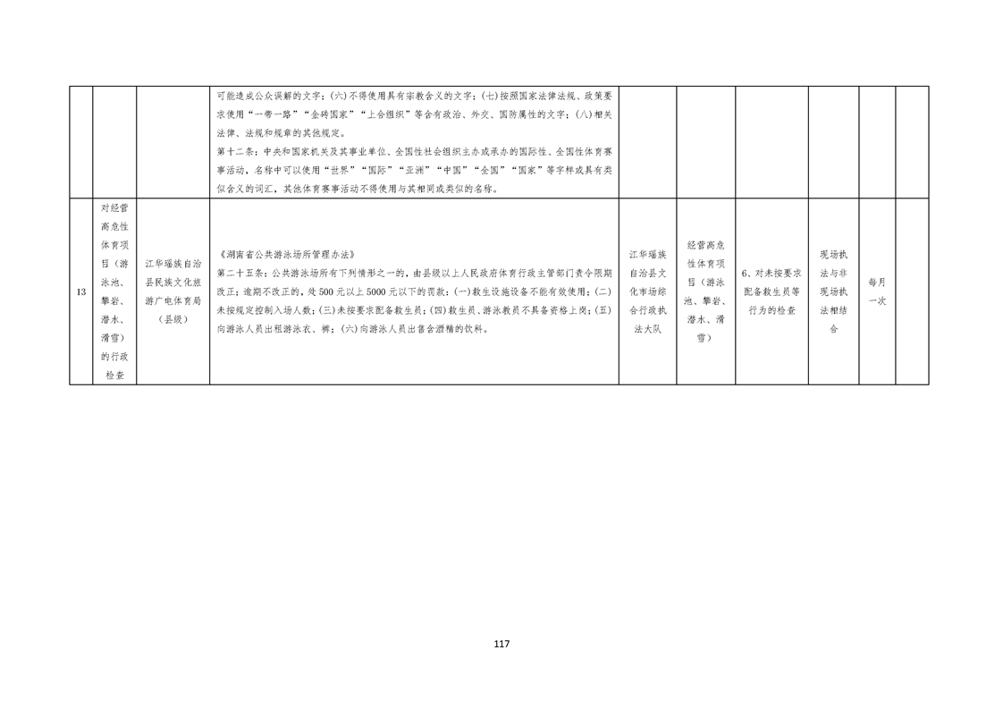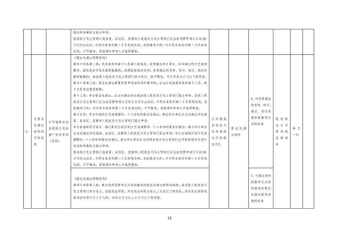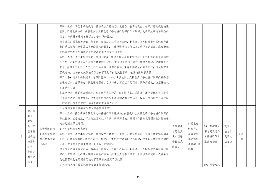 江华瑶族自治县民族文化旅游广电体育局涉企行政检查事项清单