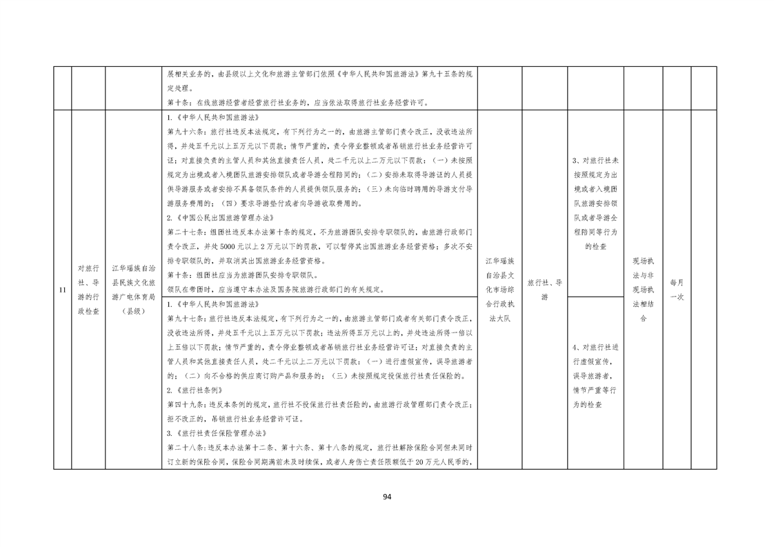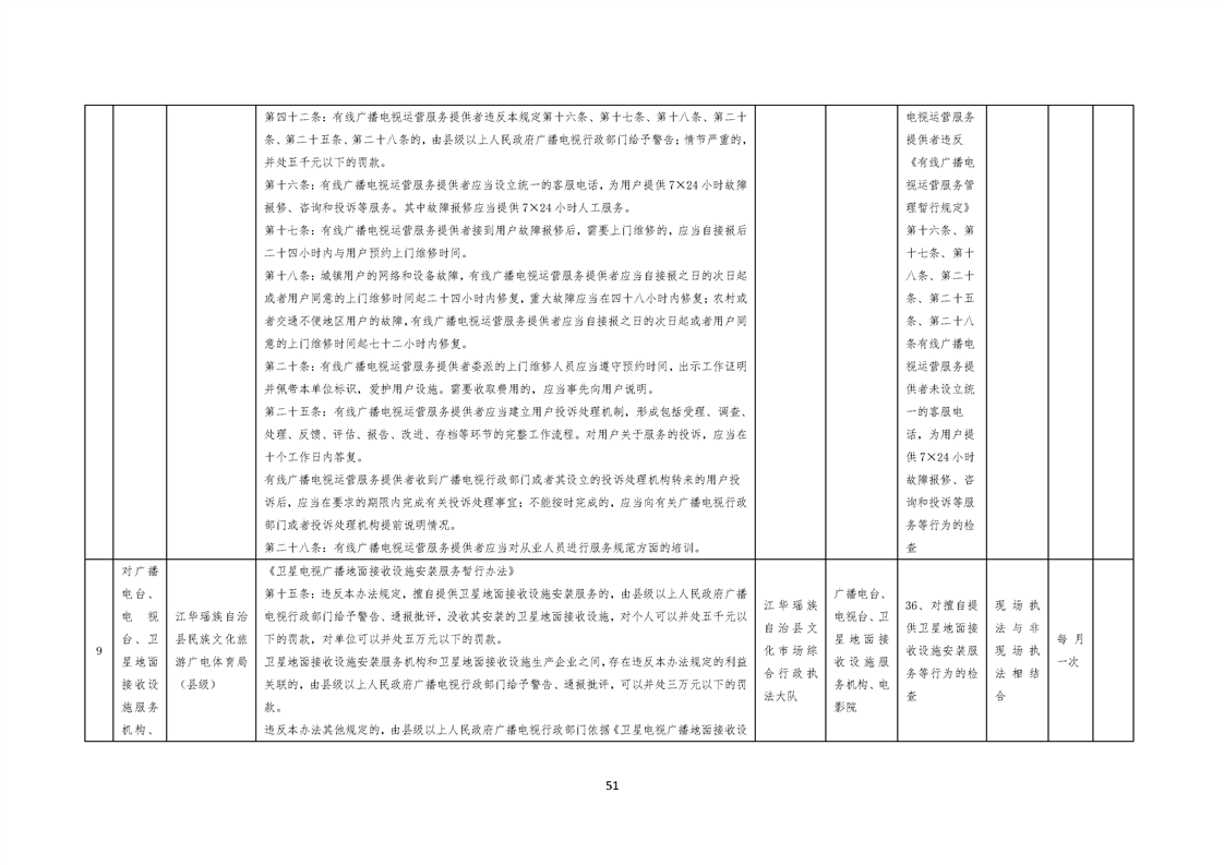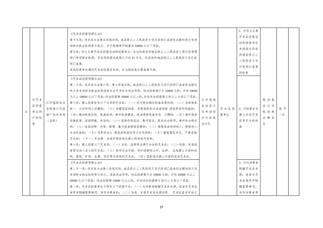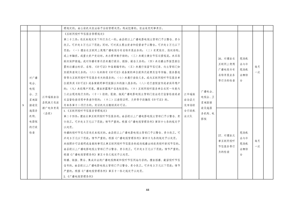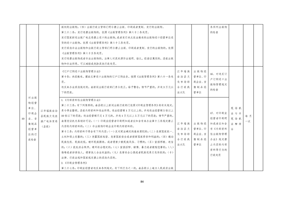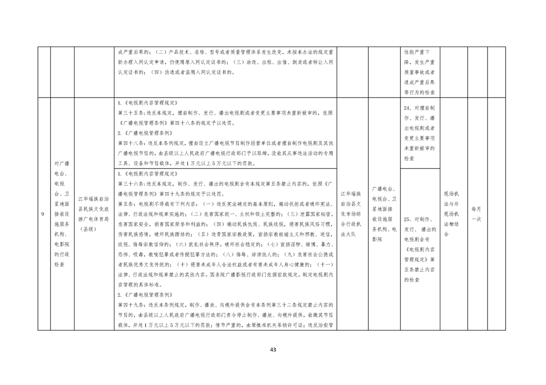 江华瑶族自治县民族文化旅游广电体育局涉企行政检查事项清单