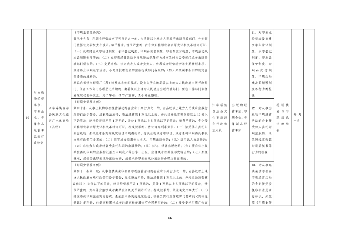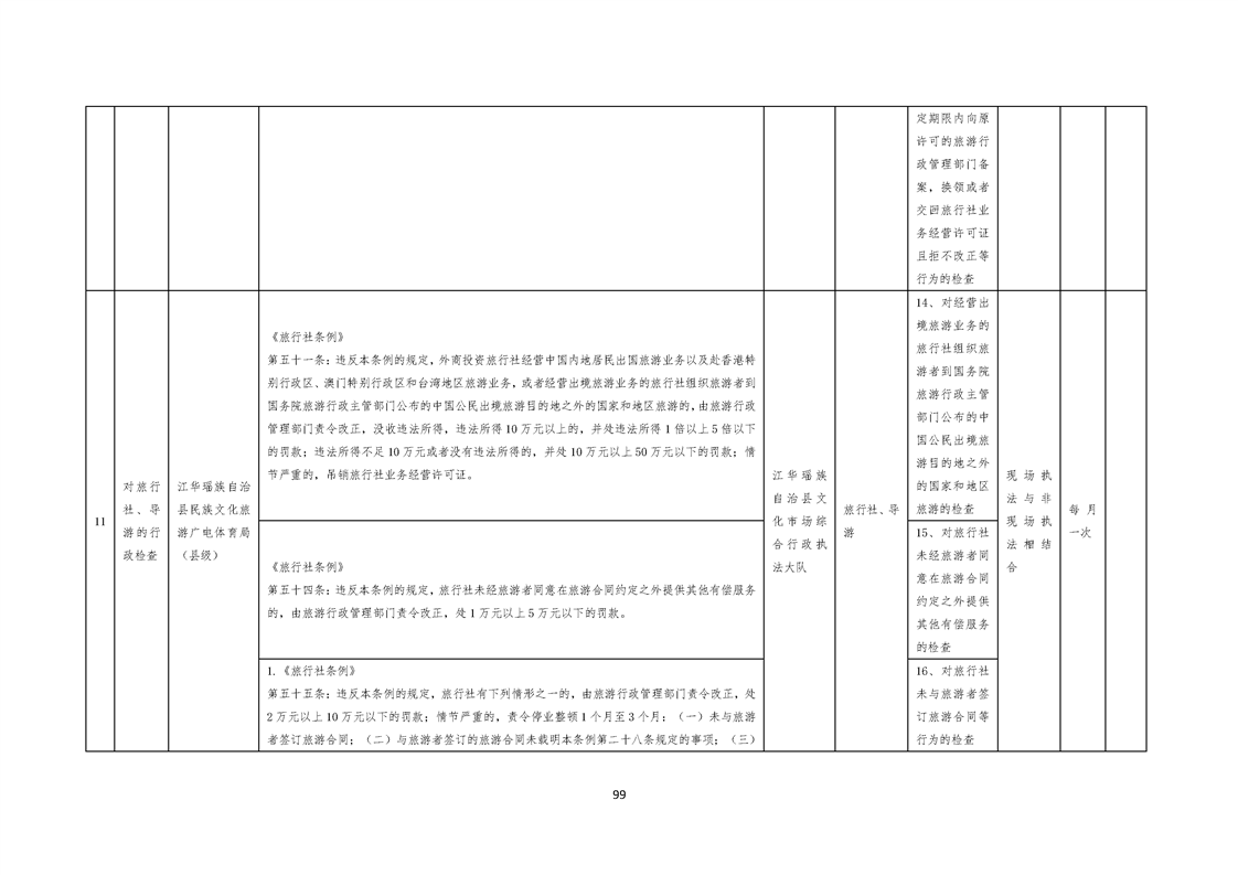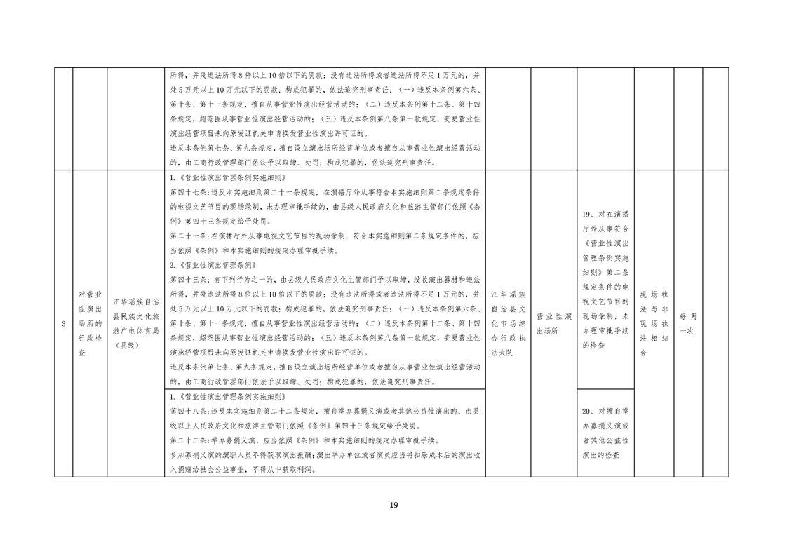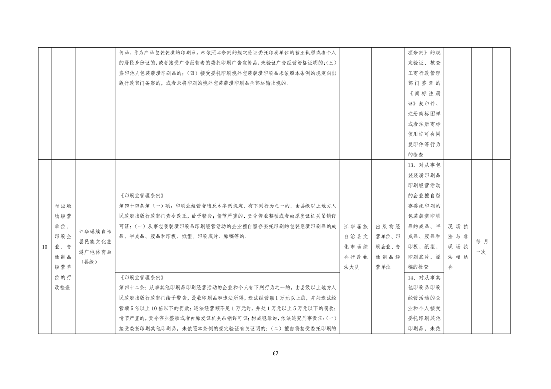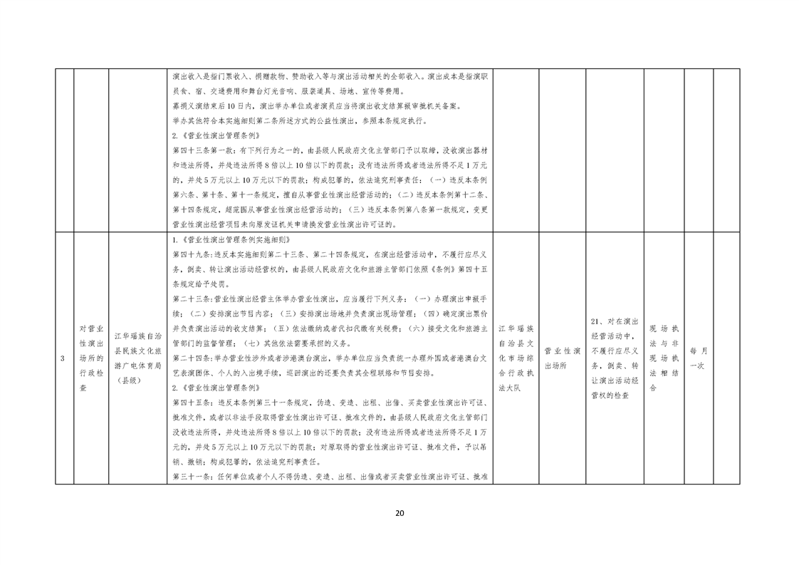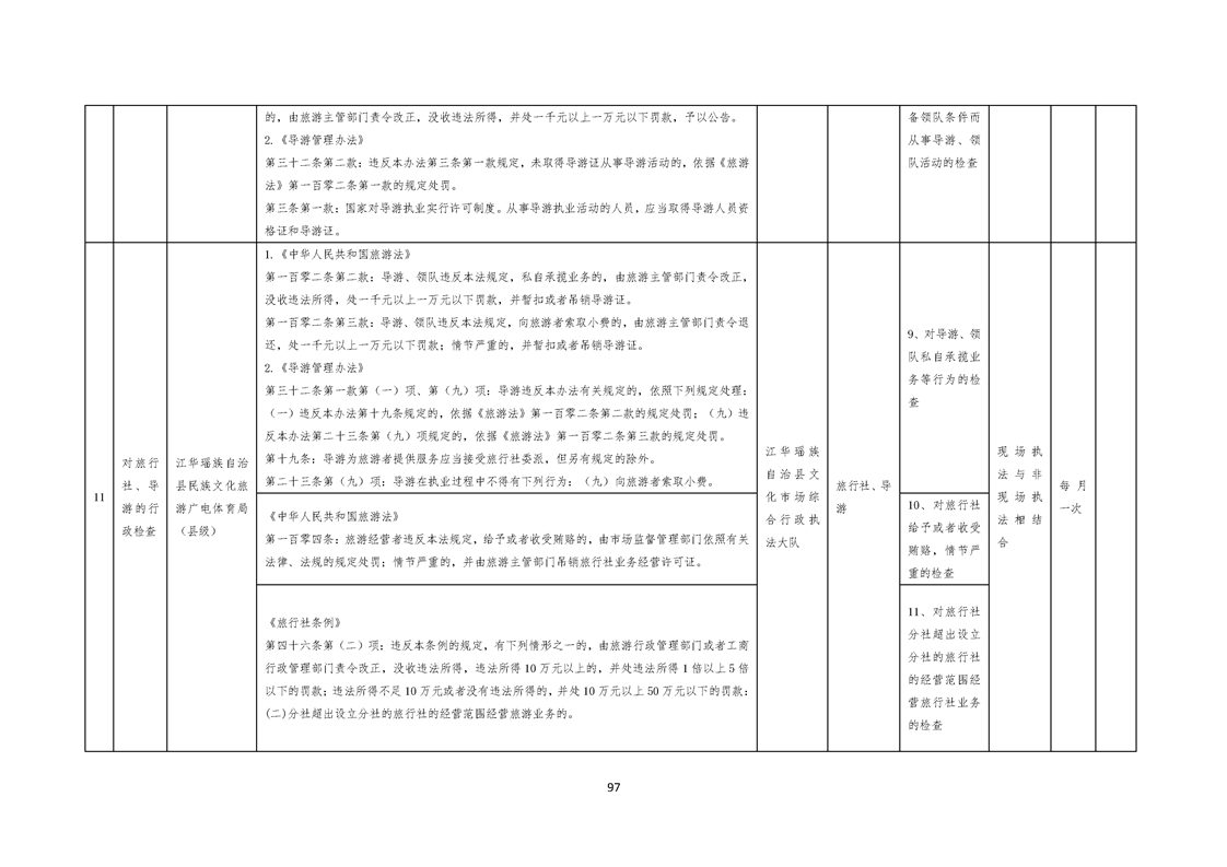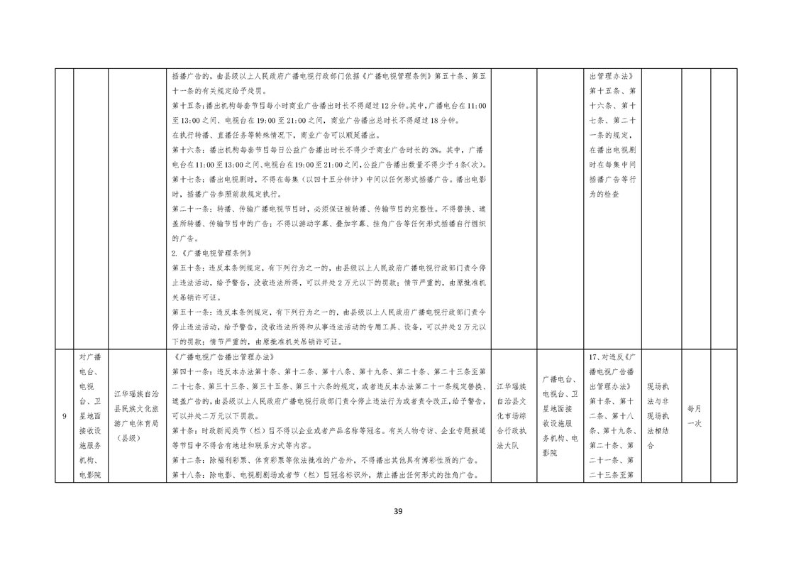 江华瑶族自治县民族文化旅游广电体育局涉企行政检查事项清单