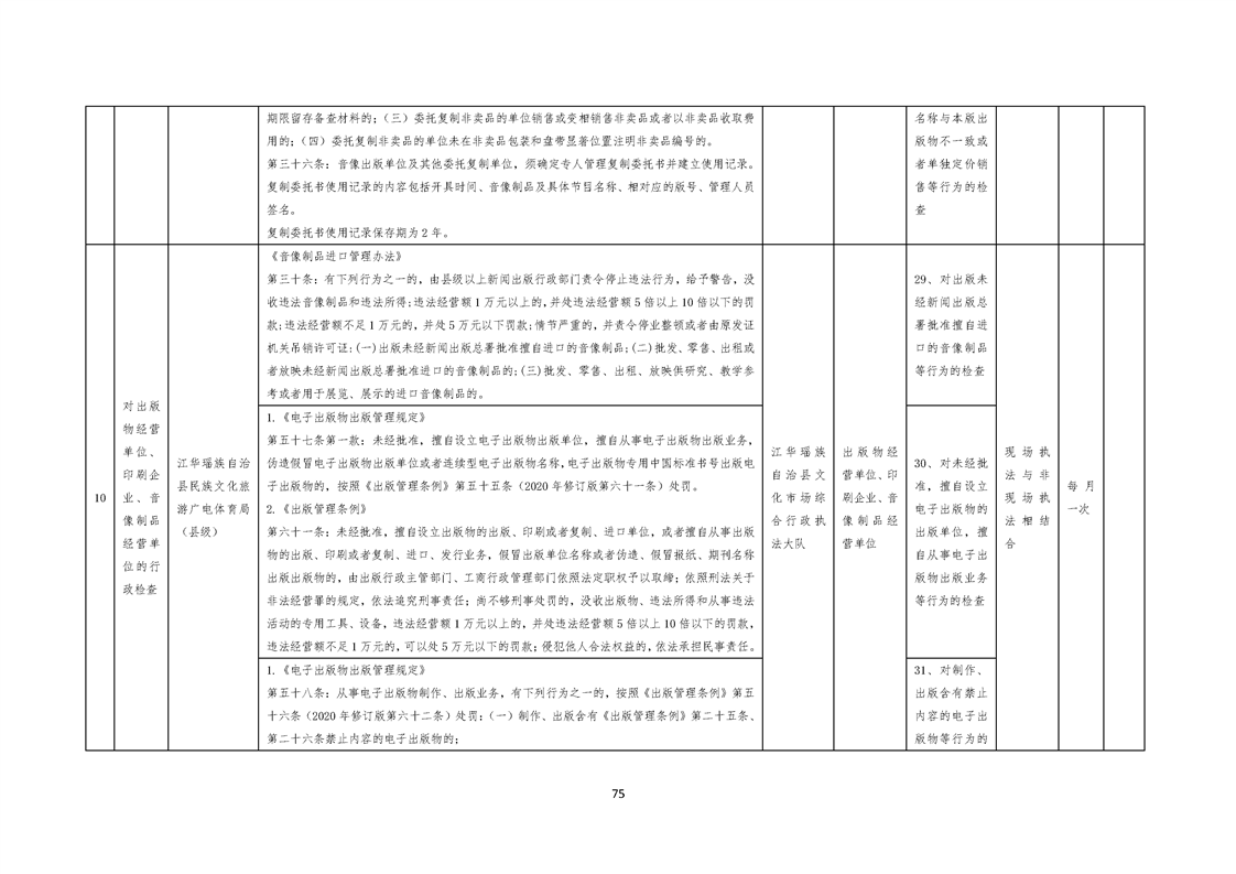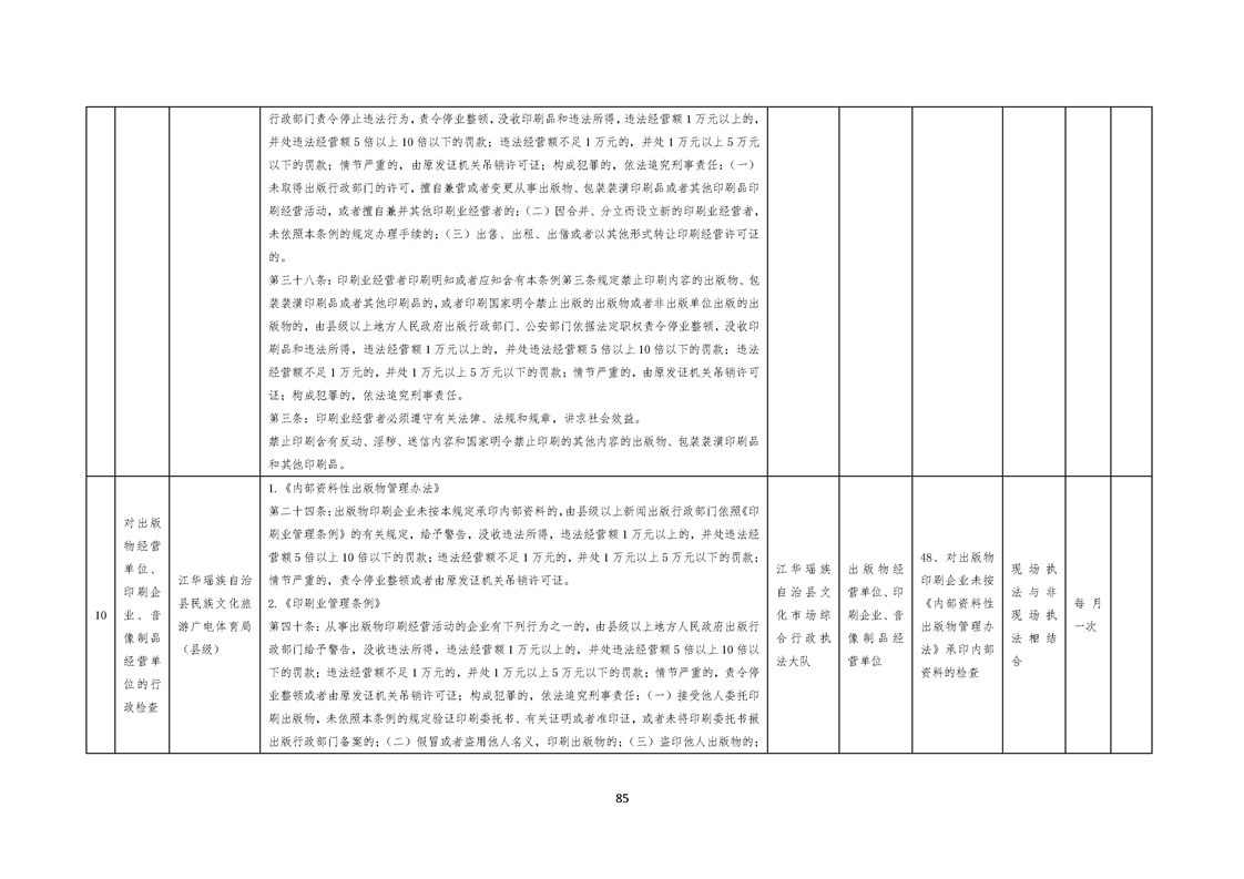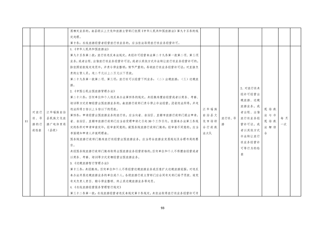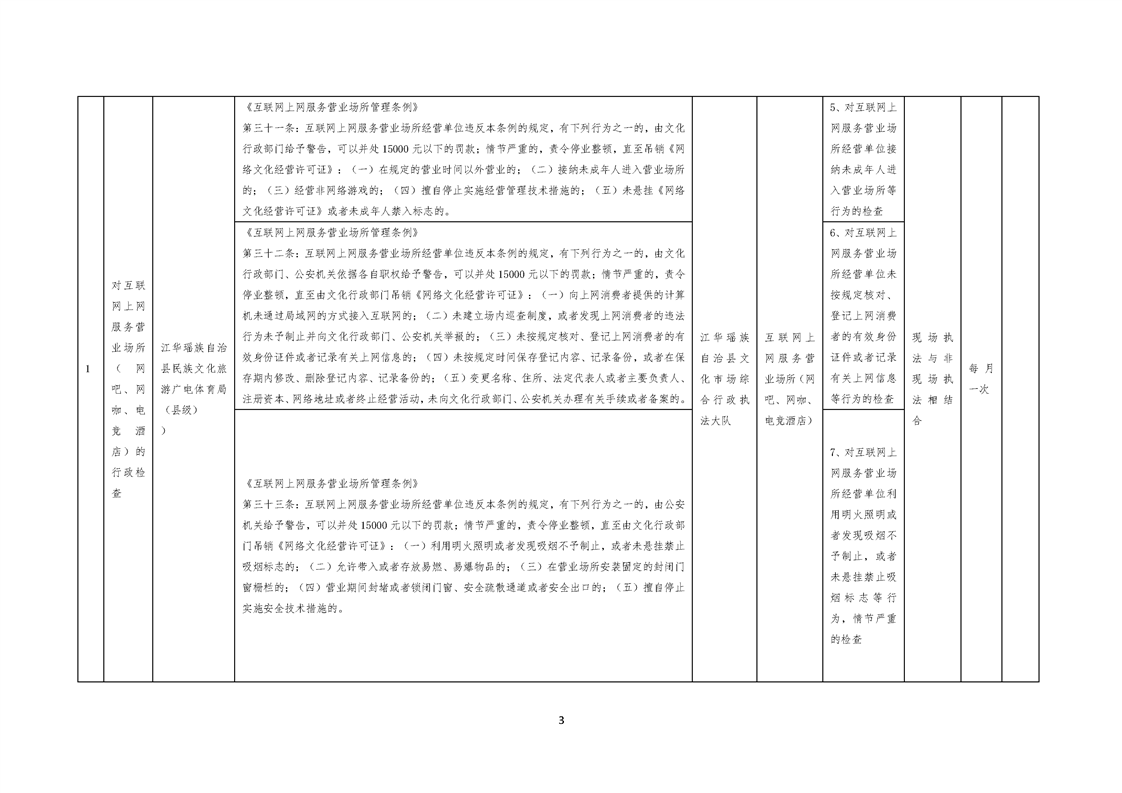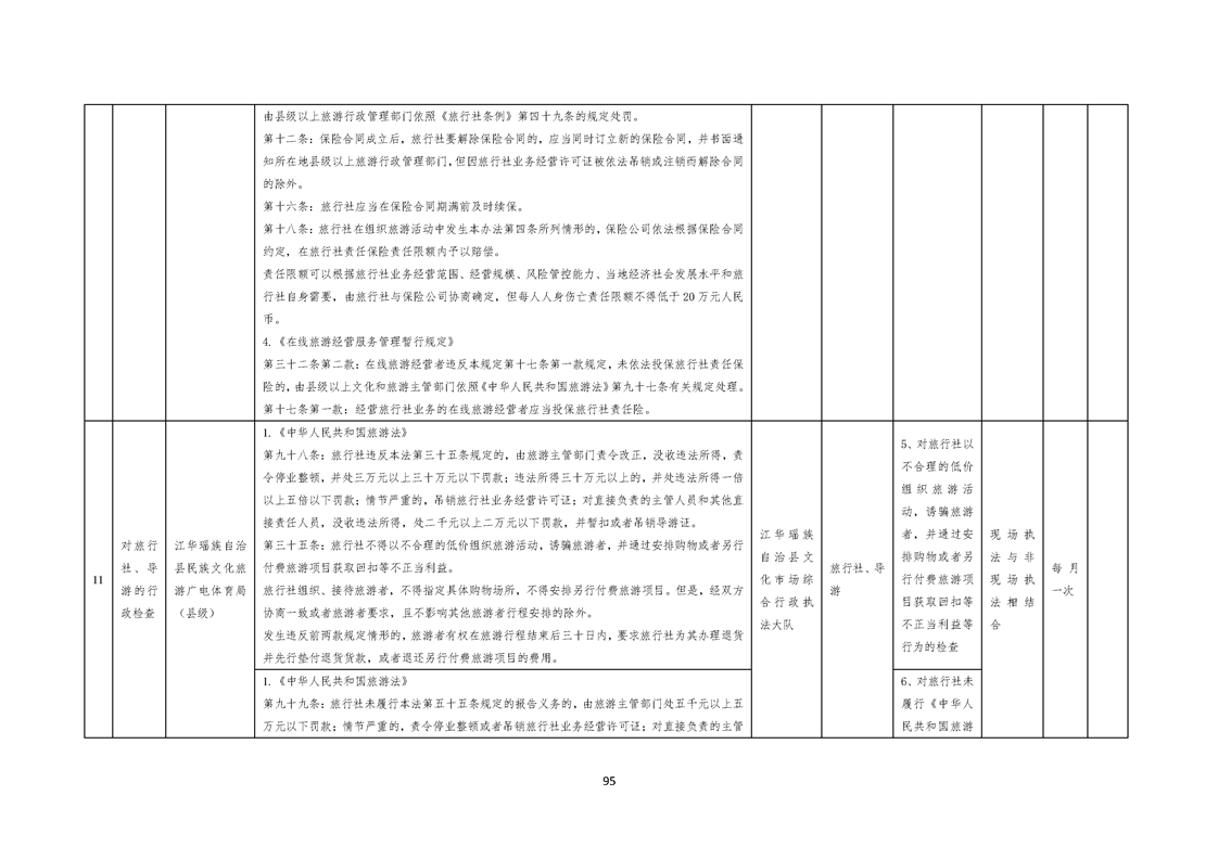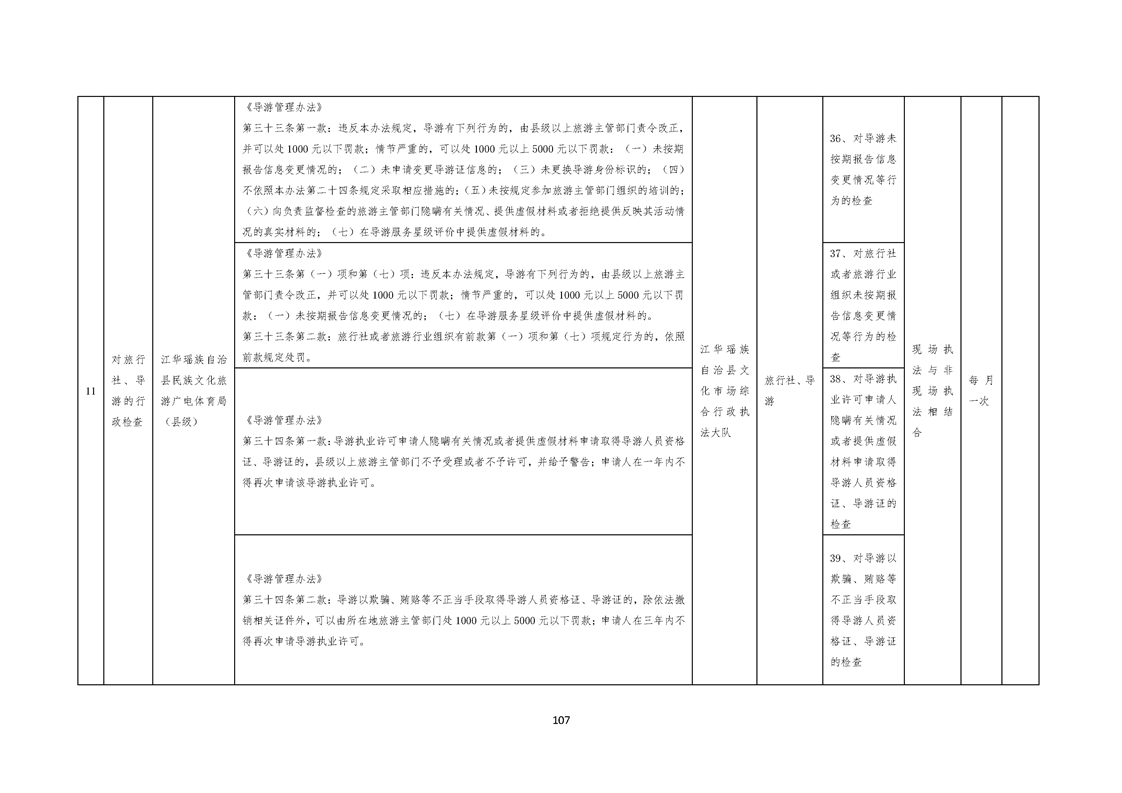 江华瑶族自治县民族文化旅游广电体育局涉企行政检查事项清单