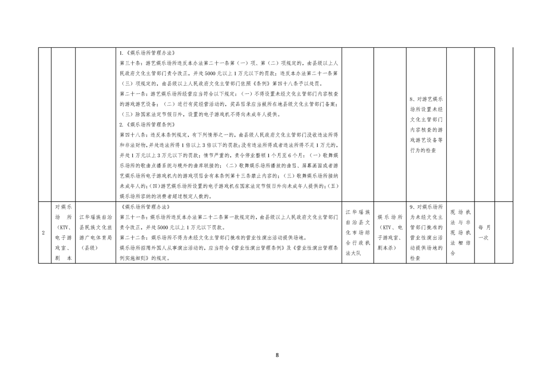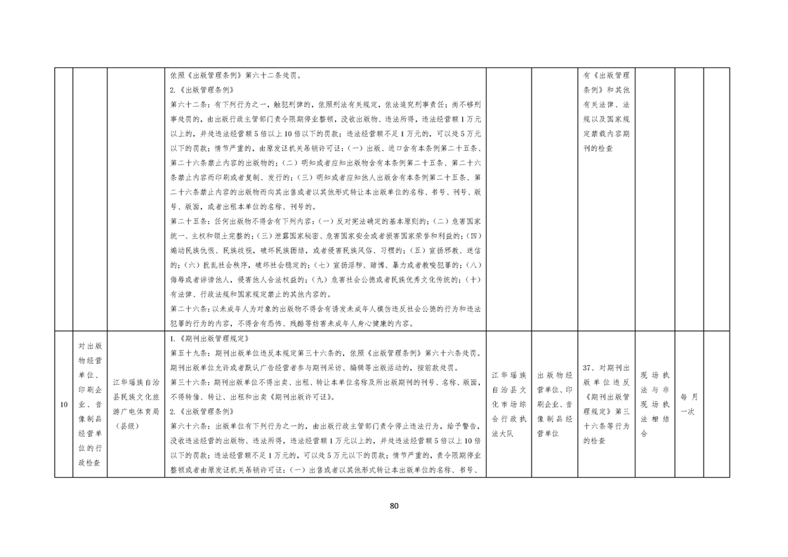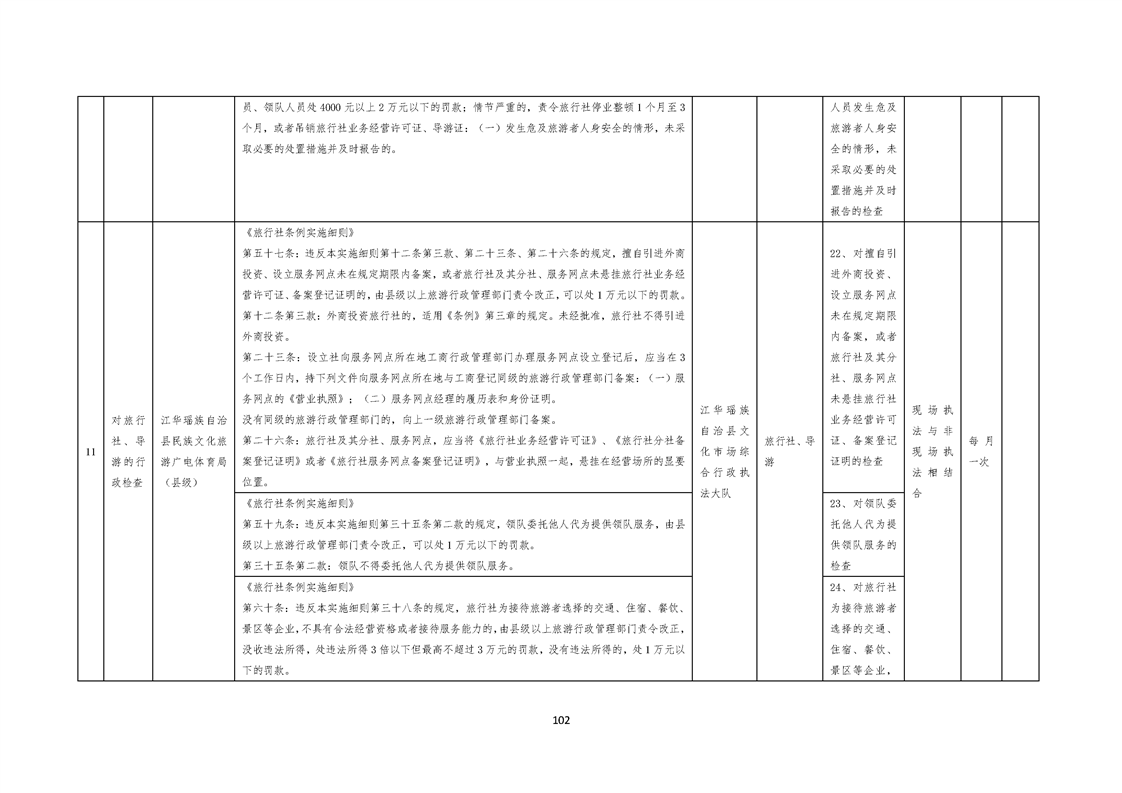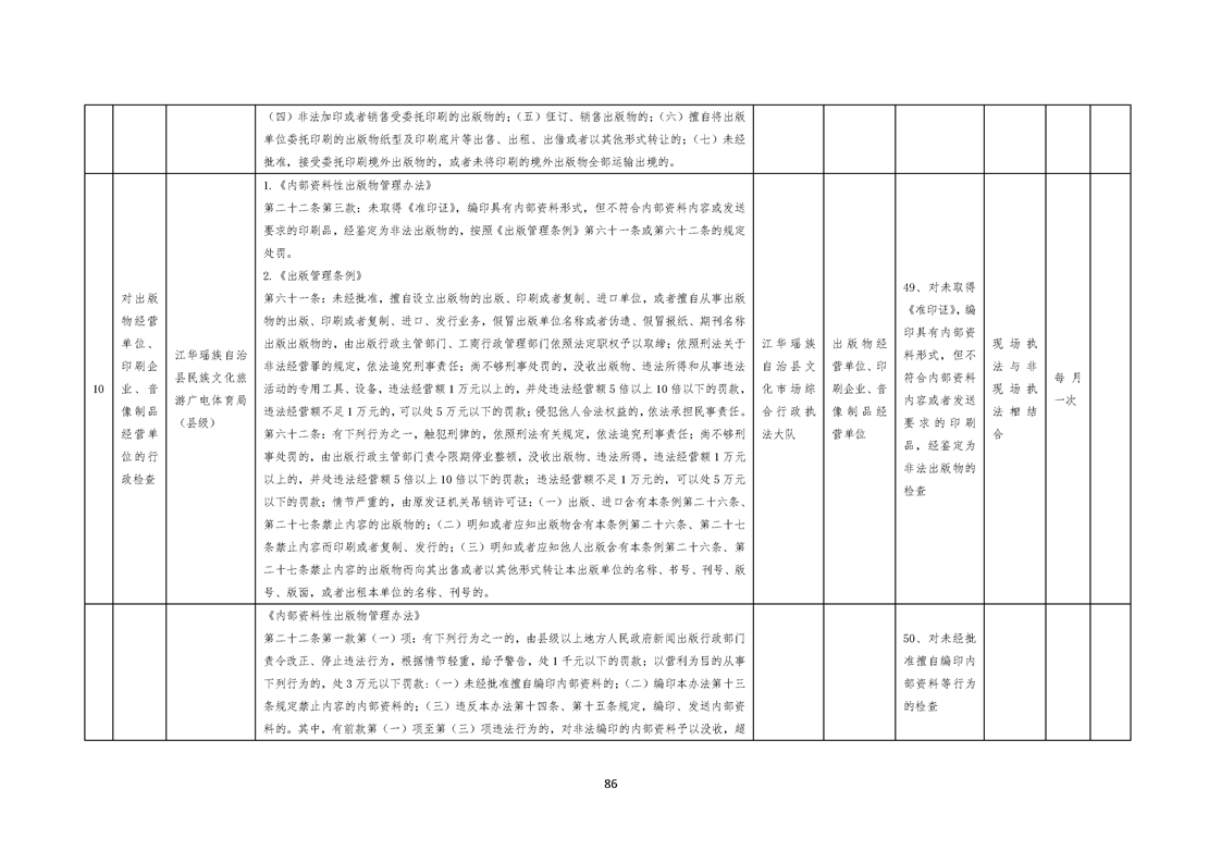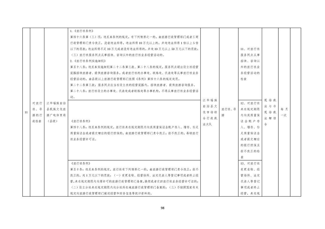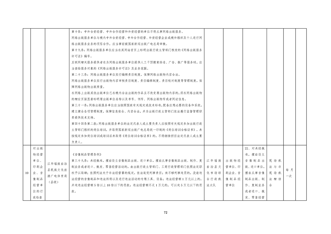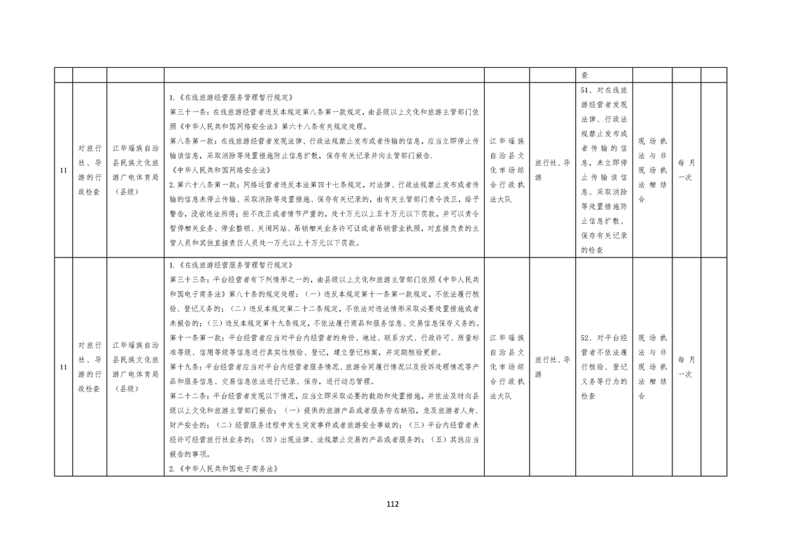 江华瑶族自治县民族文化旅游广电体育局涉企行政检查事项清单