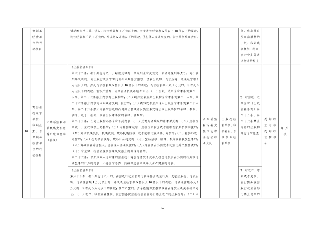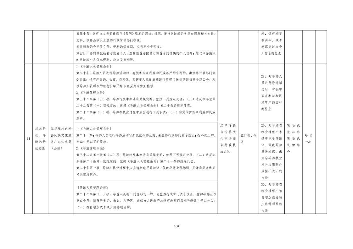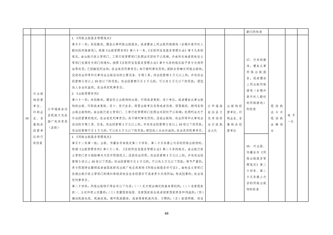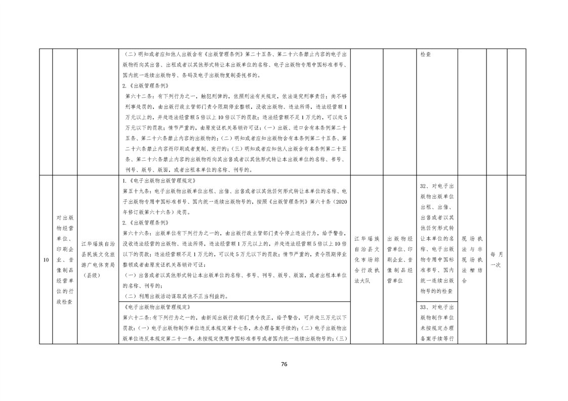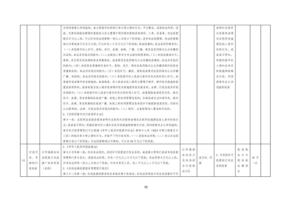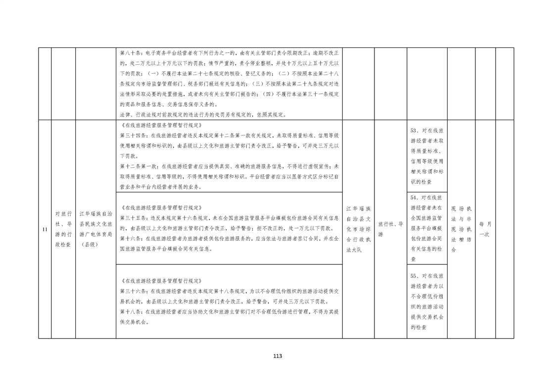 江华瑶族自治县民族文化旅游广电体育局涉企行政检查事项清单