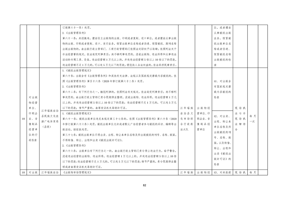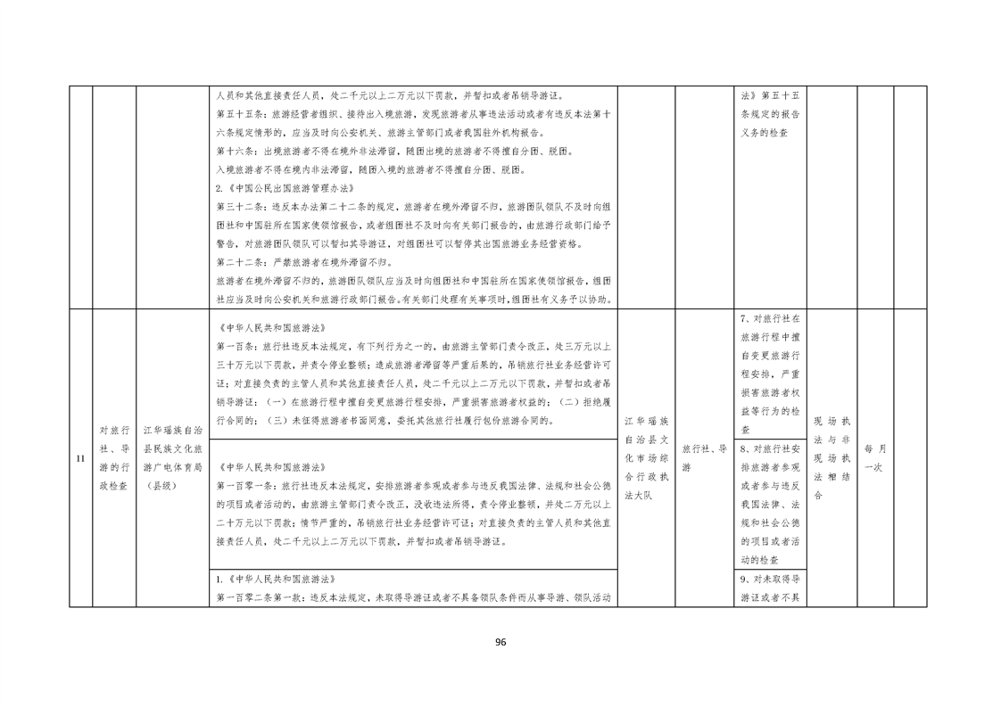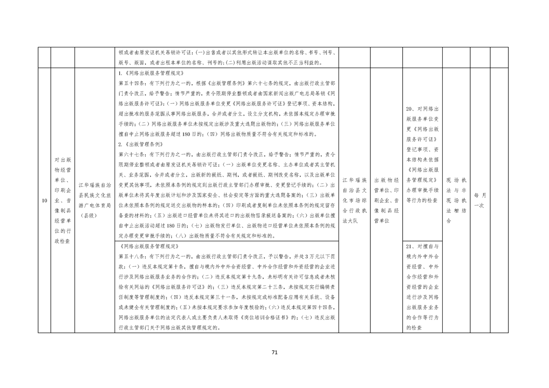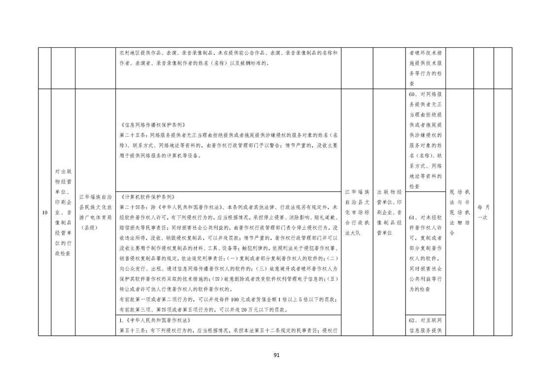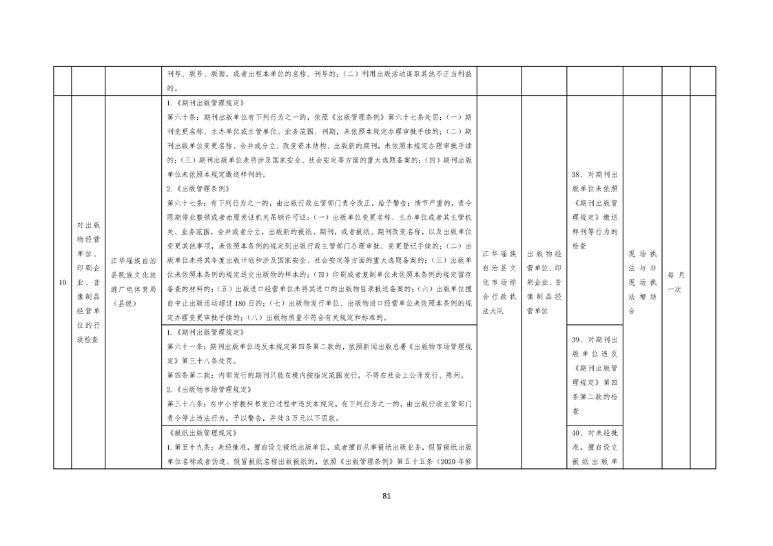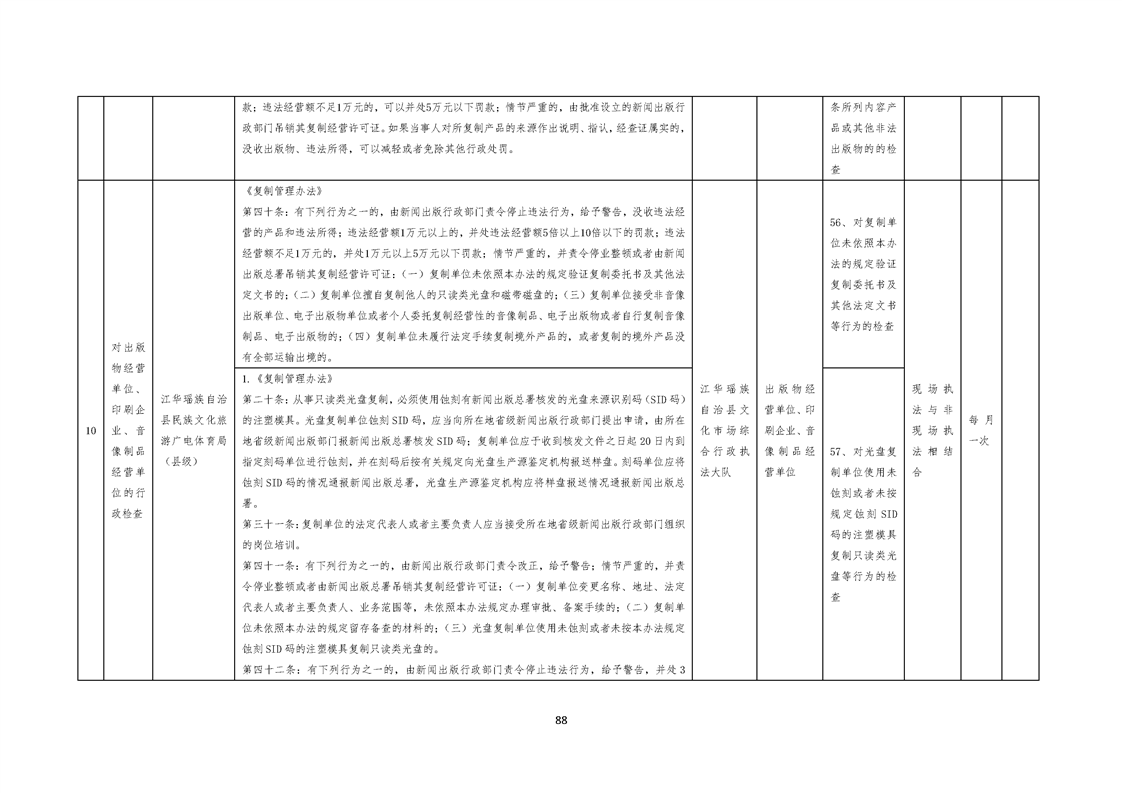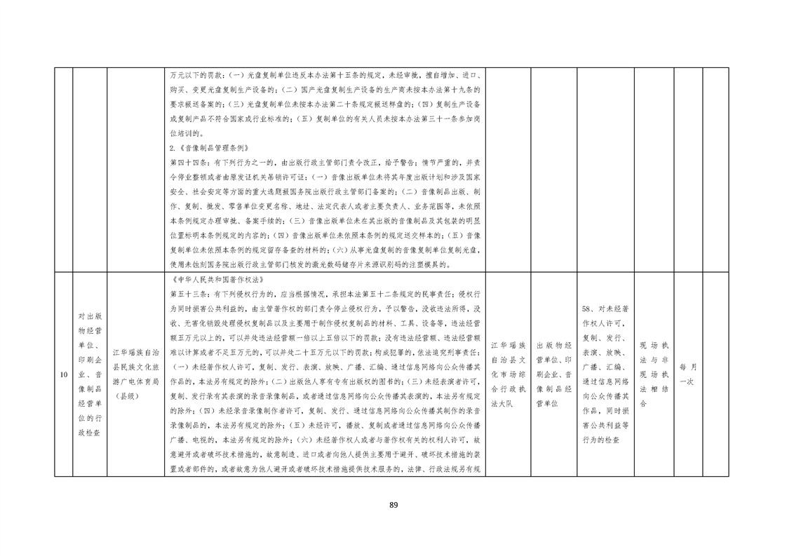 江华瑶族自治县民族文化旅游广电体育局涉企行政检查事项清单