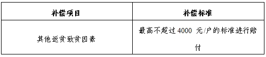 (六)因其他原因防贫综合保险:参保对象因患慢性病需长期治疗又未住院花费较大、因年老无劳动力无子女赡养等其他原因存在致贫返贫风险的,承保机构按照以下标准赔付: