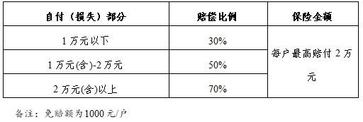 (三)因灾防贫综合保险。参保对象因自然灾害和火灾、爆炸、无法找到责任人或者责任人无力赔偿的意外事故等原因对其家庭房屋、屋内附属设施及财产(不包含现金及金银首饰)造成损失,对超出预警线且经查勘认定符合条件的,以自付(损失)部分为基数,由保险承保机构按约定比例赔付。