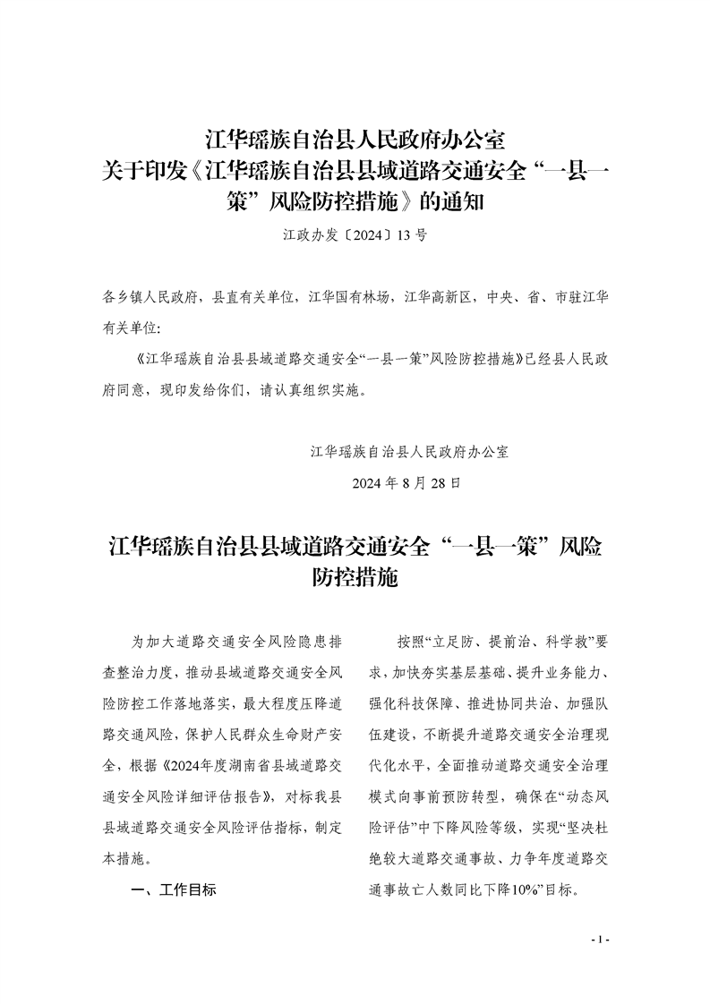 江华瑶族自治县人民政府办公室关于印发《江华瑶族自治县县域道路交通安全“一县一策”风险防控措施》的通知