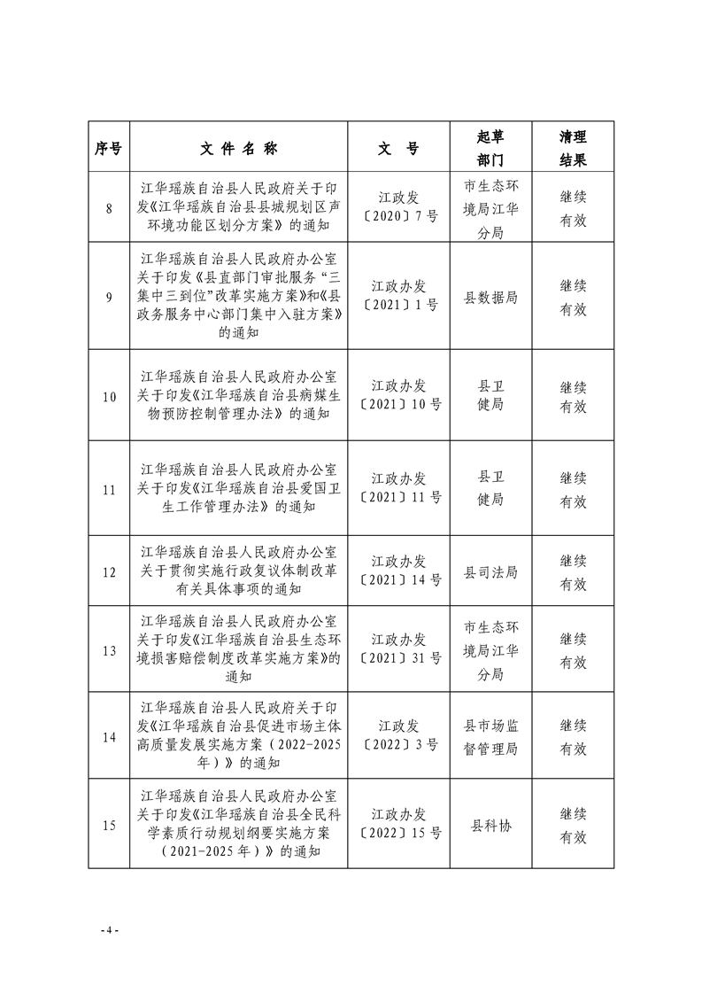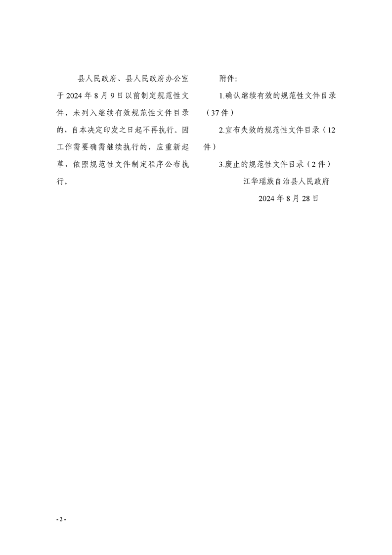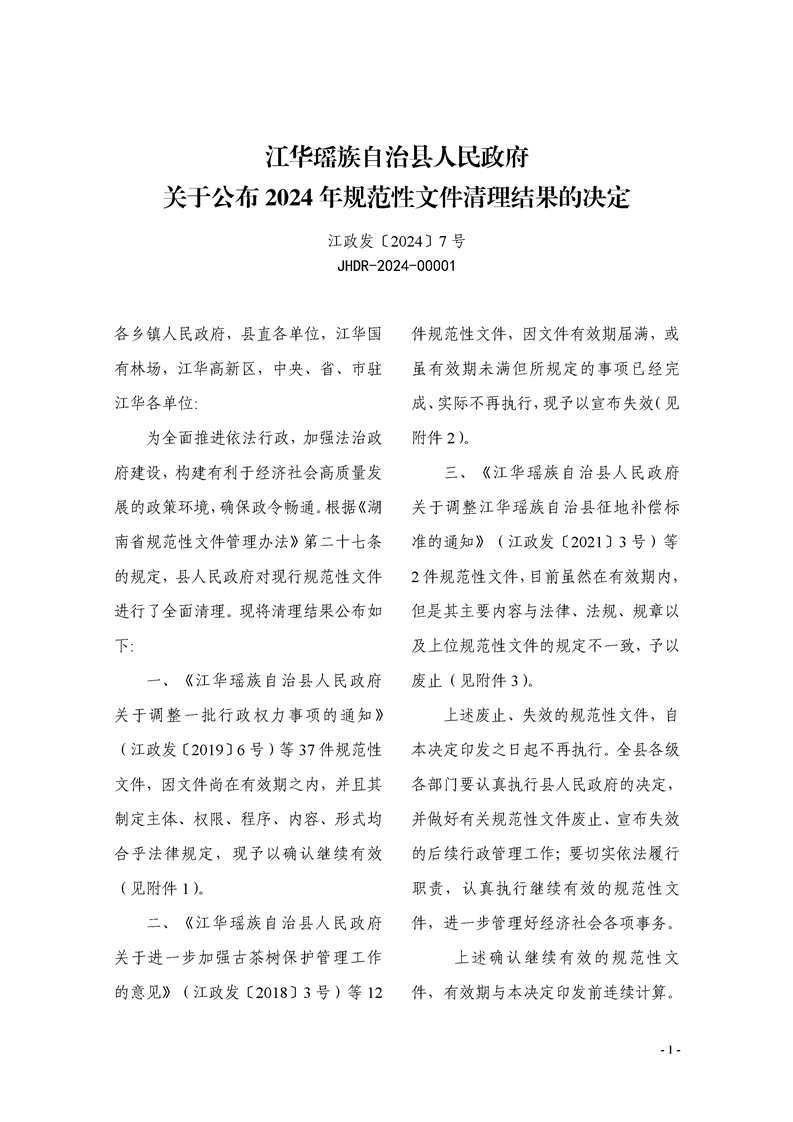 江华瑶族自治县人民政府关于公布2024年规范性文件清理结果的决定