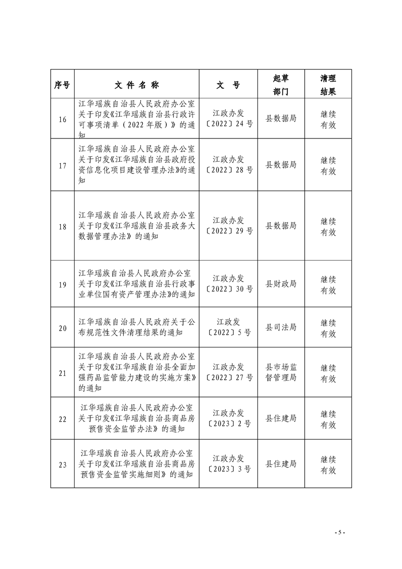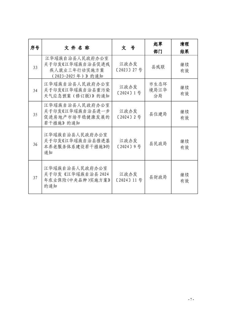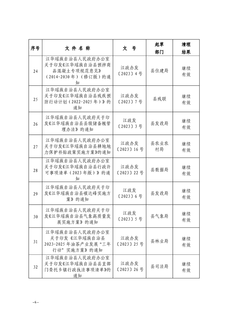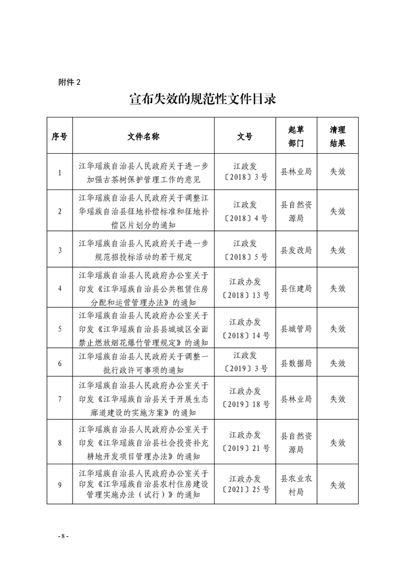 江华瑶族自治县人民政府关于公布2024年规范性文件清理结果的决定
