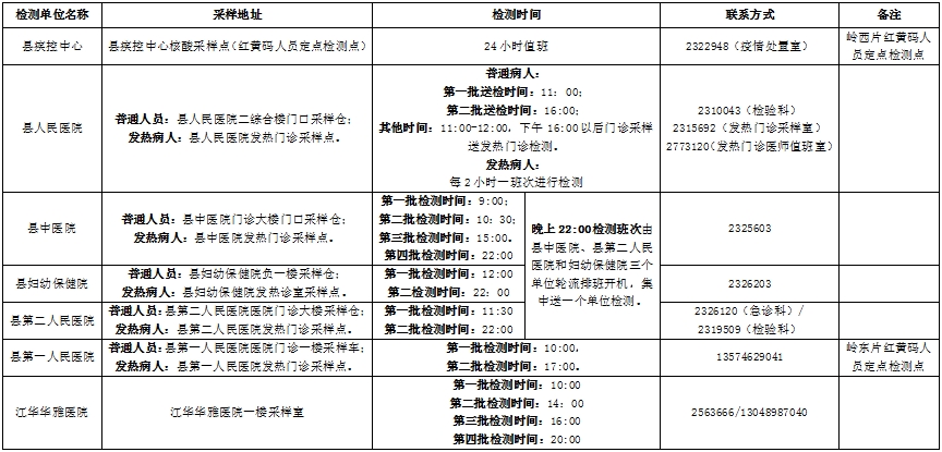 江华瑶族自治县核酸检测点名单公示