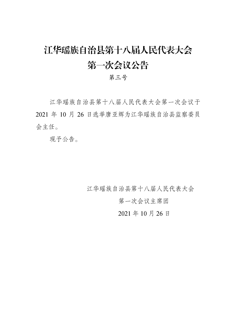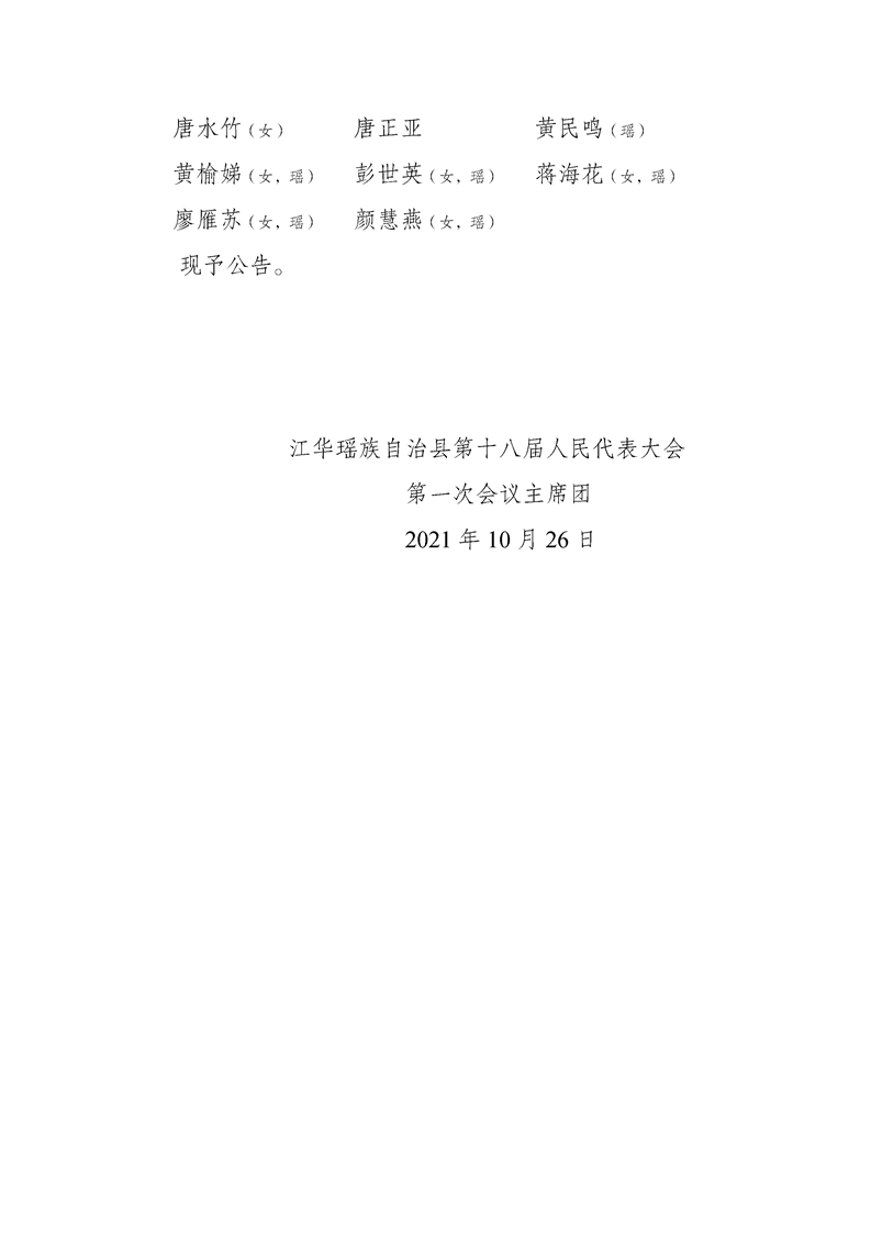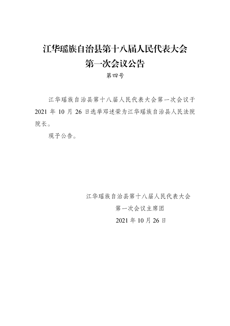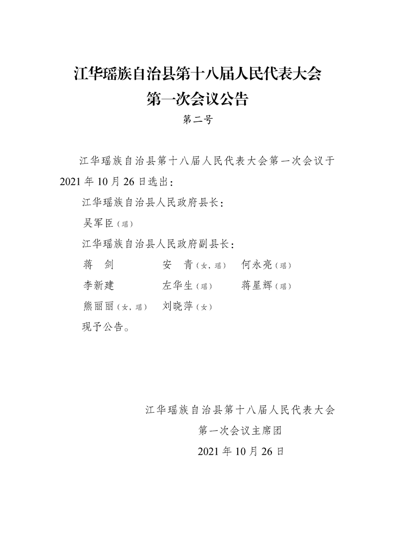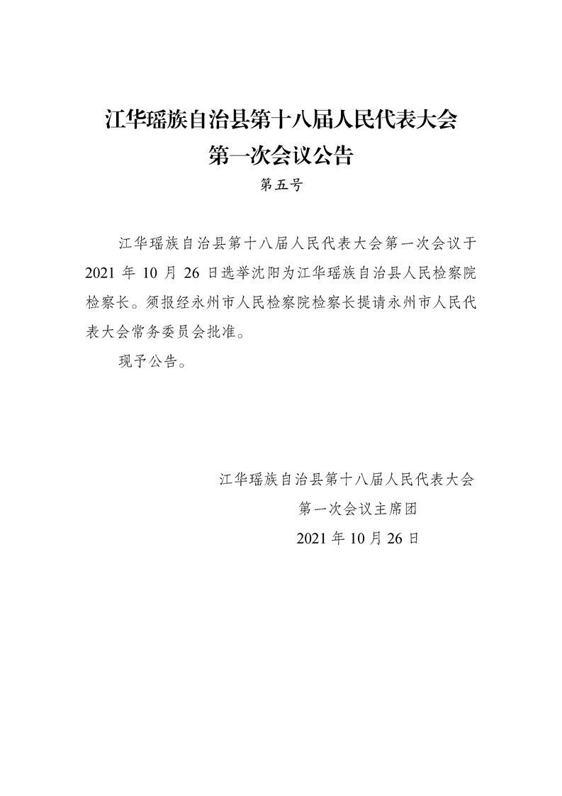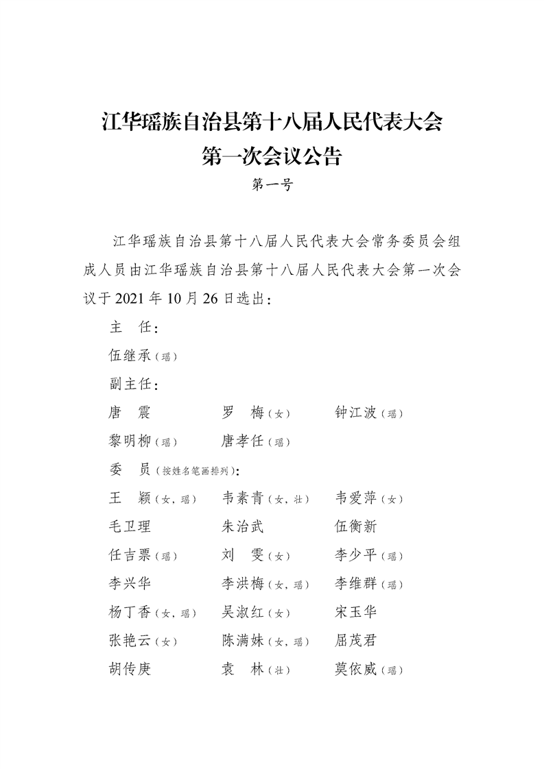 江华瑶族自治县第十八届人民代表大会第一次会议公告(第一至五号)