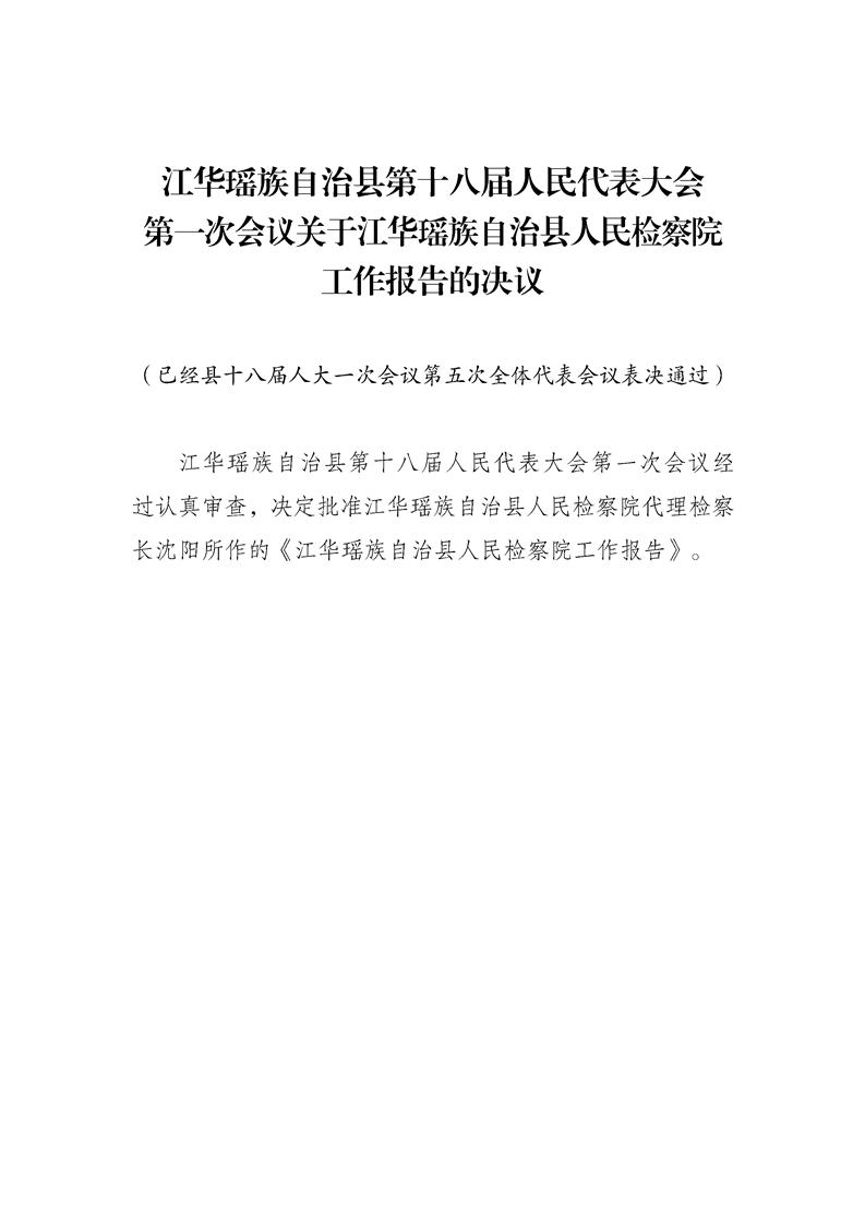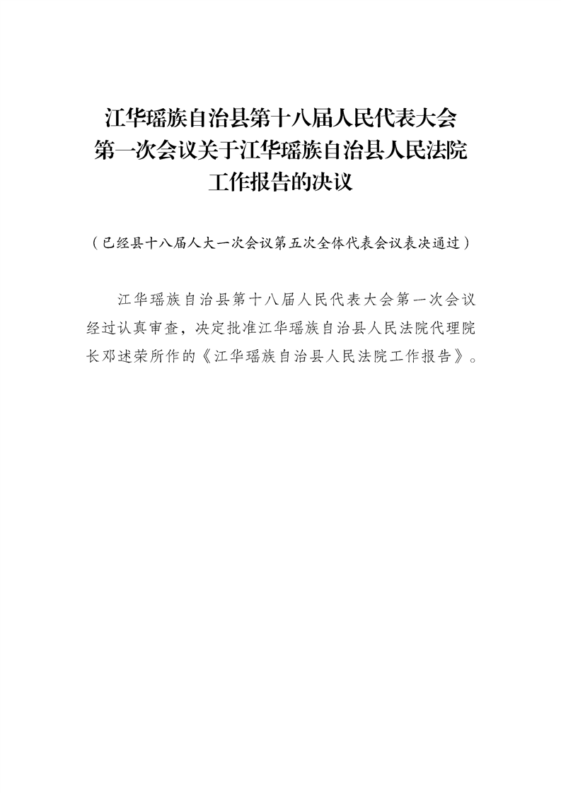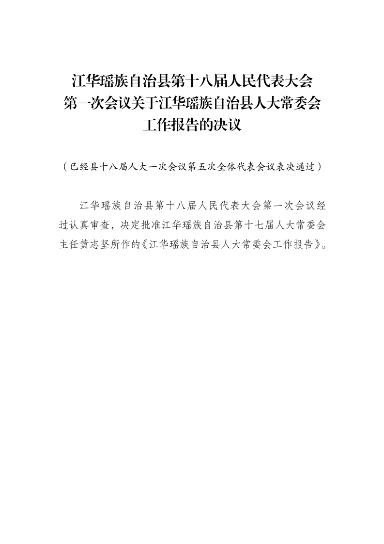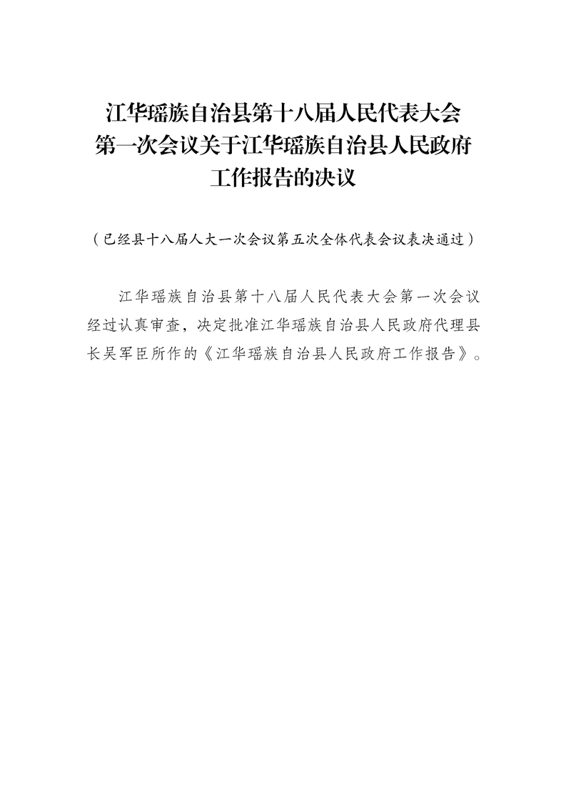 江华瑶族自治县第十八届人民代表大会第一次会议关于江华瑶族自治县人民政府工作报告的决议