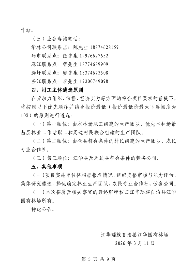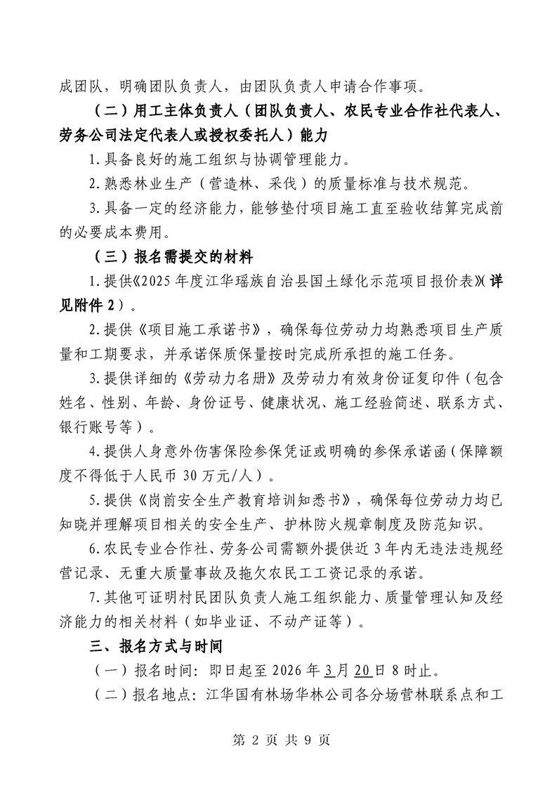 江华国有林场2025年国土绿化示范项目征集林业生产劳务用工的公告