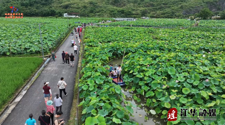 近日,江华沱江镇竹园寨社区的数百亩荷花迎来盛花期,吸引了众多游客前来观赏。
