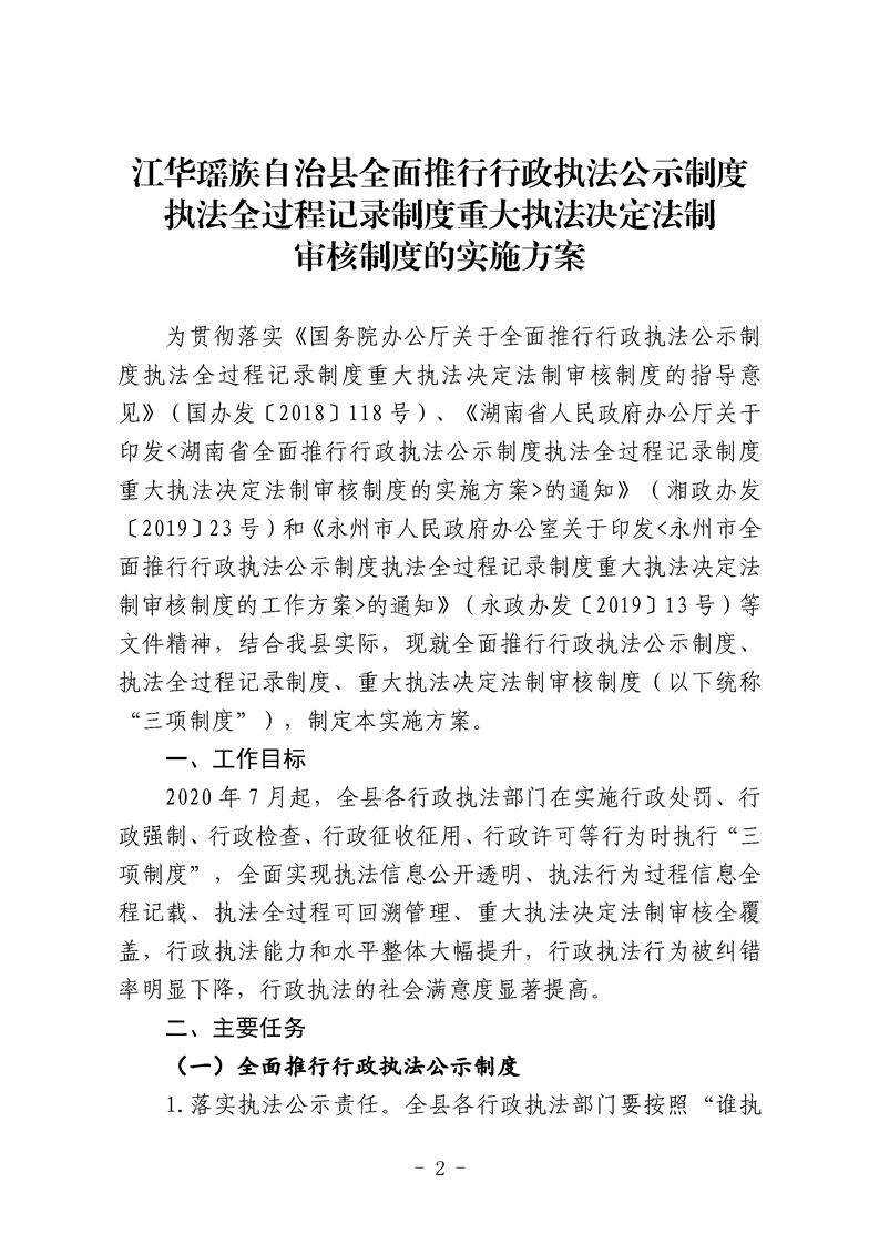 1.文字解读|关于《江华瑶族自治县全面推行行政执法公示制度执法全过程记录制度重大执法决定法制审核制度的实施方案》政策解读