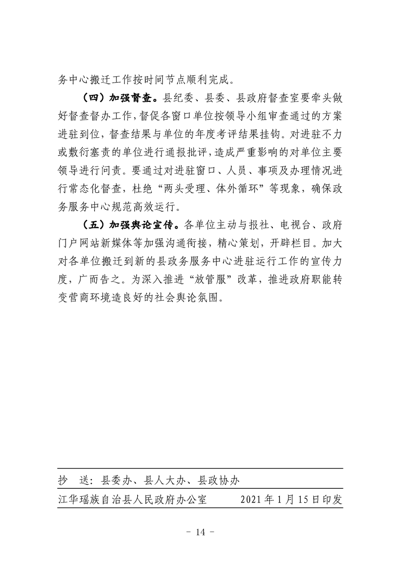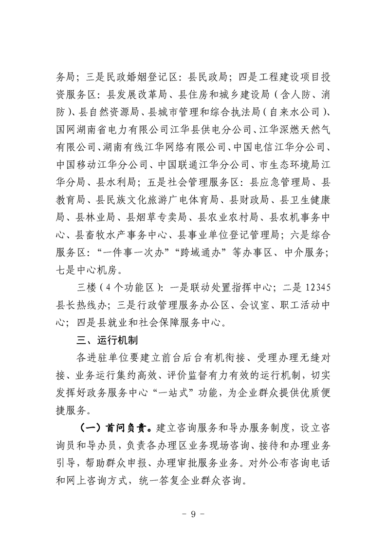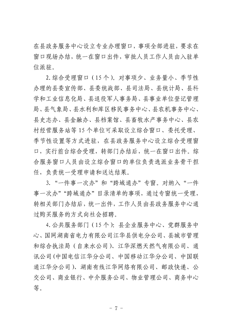 江华瑶族自治县人民政府办公室关于印发《县直部门审批服务“三集中三到位”改革实施方案》和《县政务服务中心部门集中入驻方案》的通知