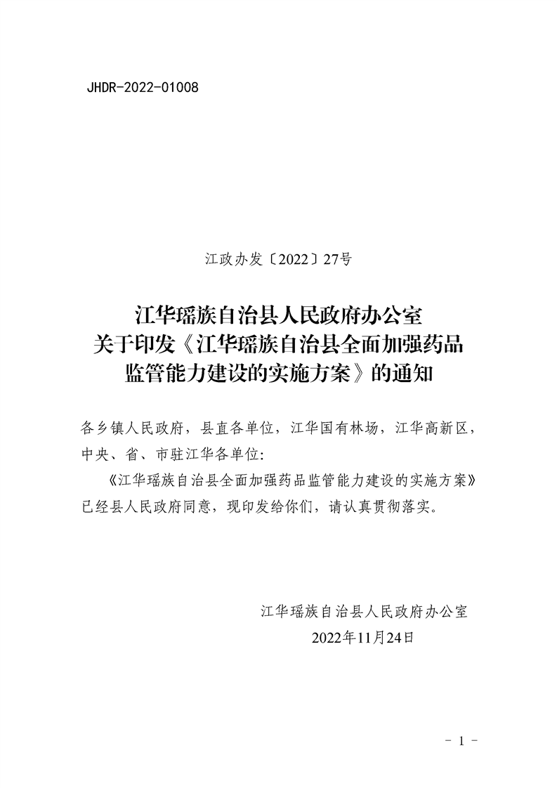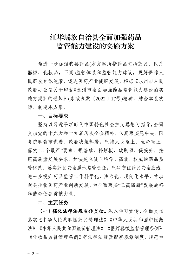 1.文字解读|关于《江华瑶族自治县全面加强药品监管能力建设的实施方案》政策解读