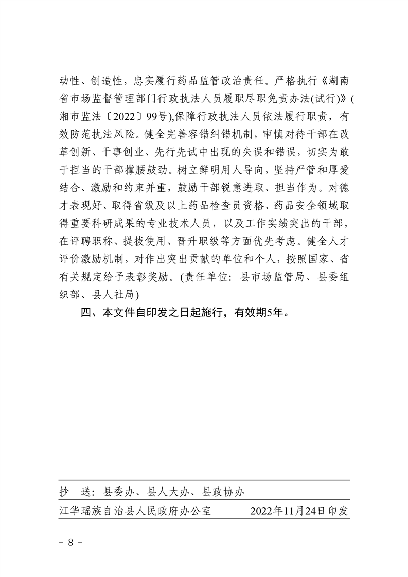 江华瑶族自治县人民政府办公室关于印发《江华瑶族自治县全面加强药品监管能力建设的实施方案》的通知