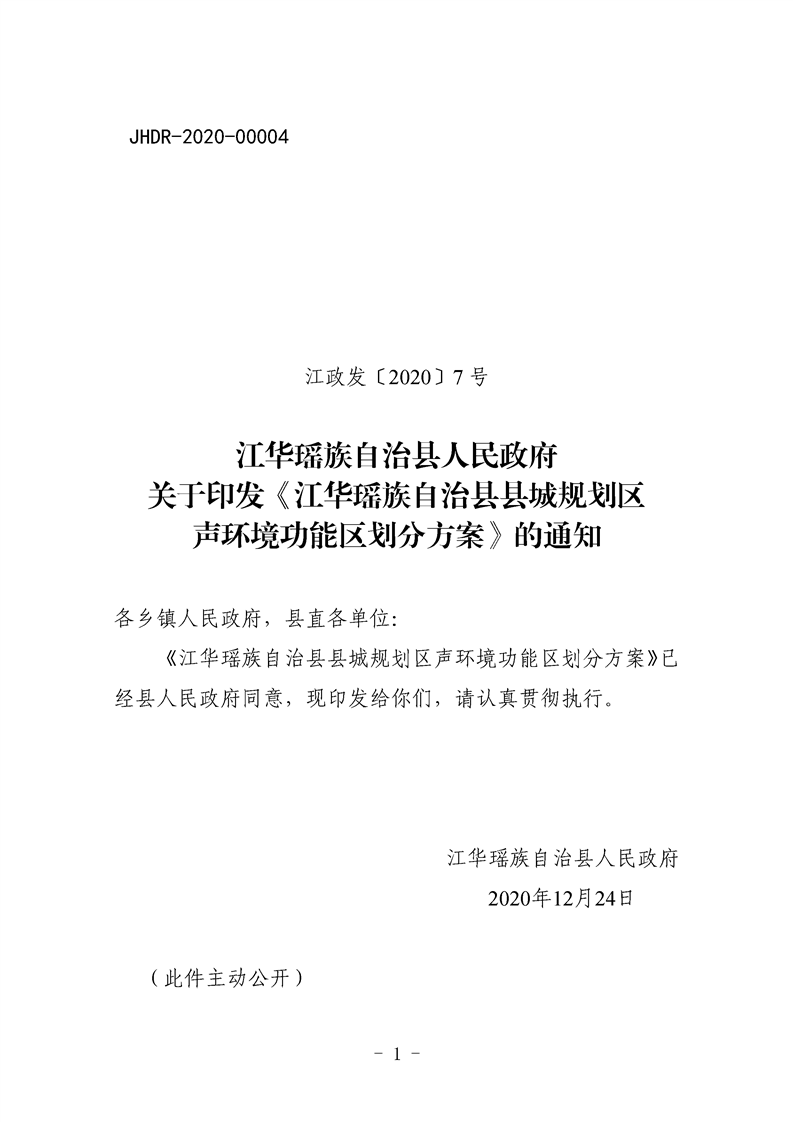 江华瑶族自治县人民政府关于印发《江华瑶族自治县县城规划区声环境功能区划分方案》的通知
