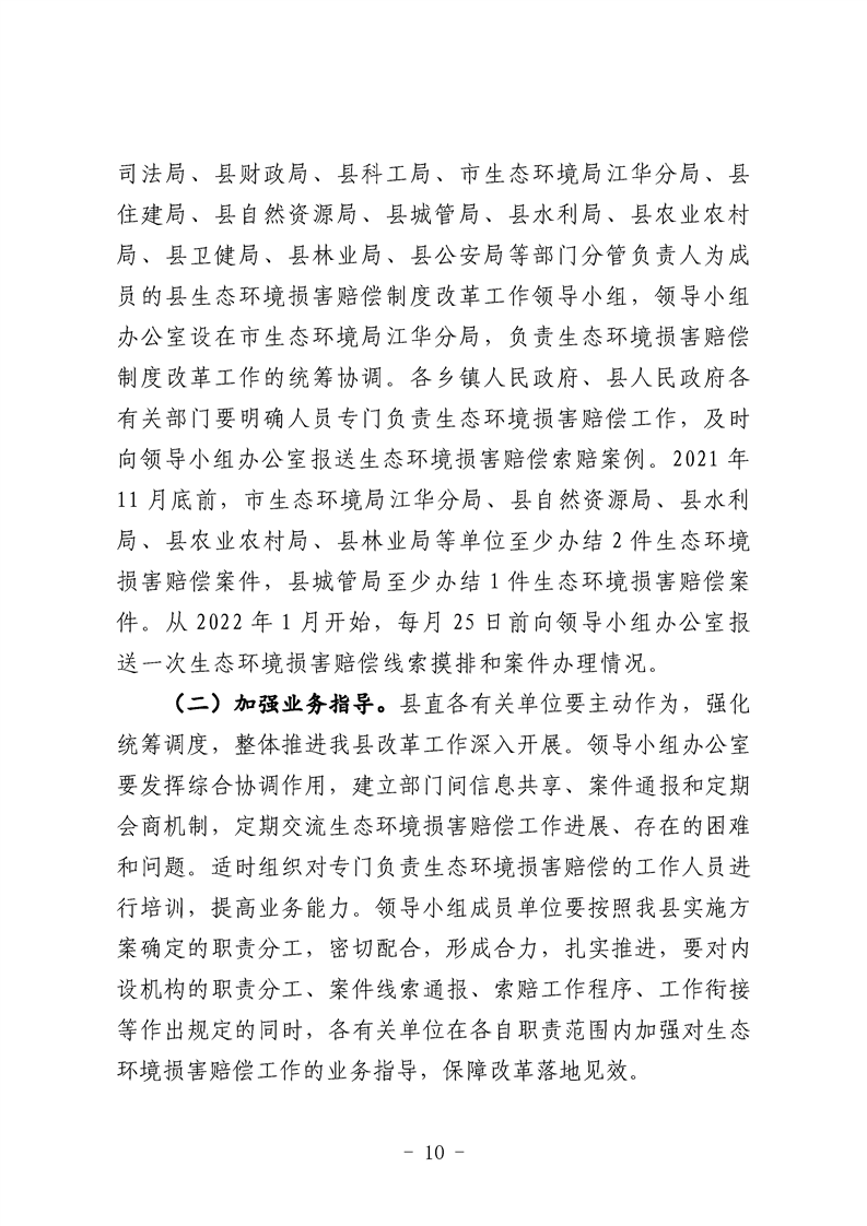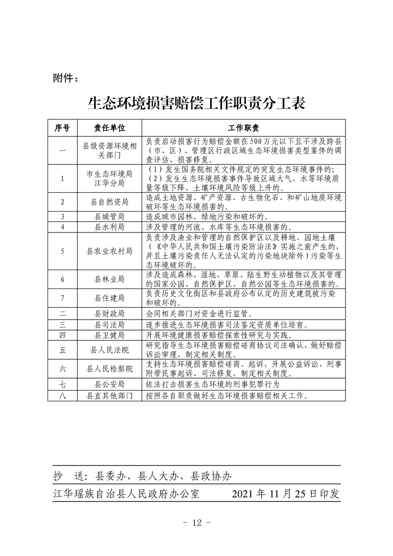 江华瑶族自治县人民政府办公室关于印发《江华瑶族自治县生态环境损害赔偿制度改革实施方案》的通知