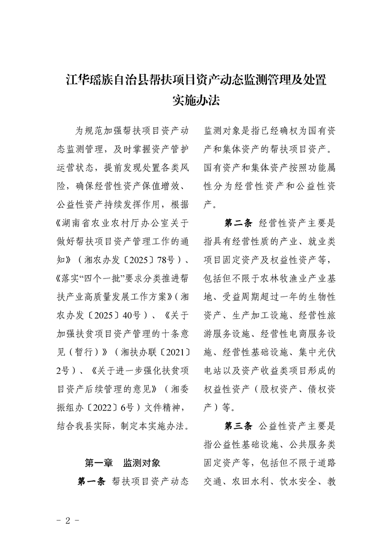 2.部门解读|江华瑶族自治县人民政府办公室关于印发《江华瑶族自治县帮扶项目资产动态监测管理及处置实施办法》的通知
