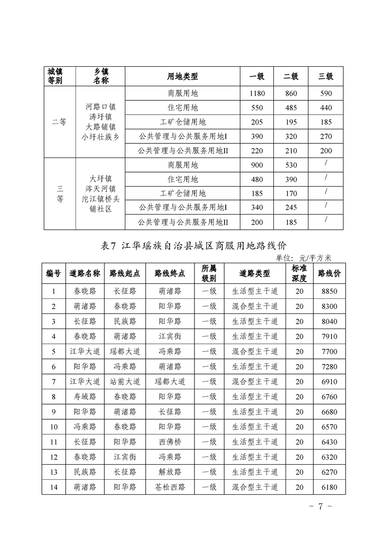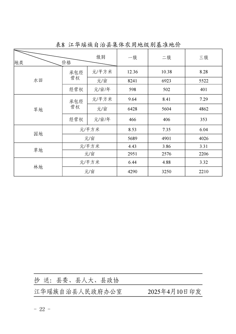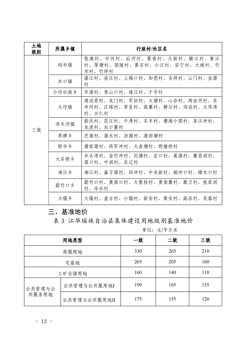 江华瑶族自治县人民政府关于公布江华瑶族自治县城镇基准地价更新成果、集体建设用地基准地价评估成果、农用地基准地价评估成果的通知