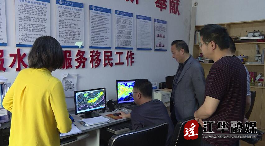 艾克海一行来到县气象局、大路铺水文站,仔细查看了天气雷达和雨量分布图像,详细了解了强降水范围、未来几天我县天气和水文情况,并向县气象局相关人员询问强降雨可能引发的次生灾害进行了预估评判。
