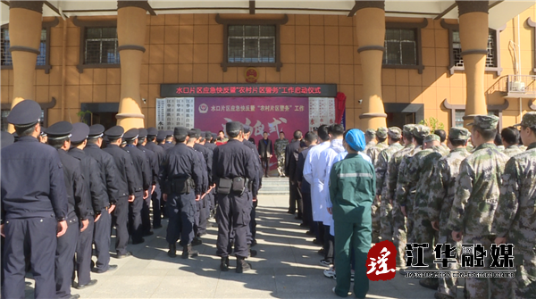 仪式上,文嵩宣布水口片区应急快反暨“农村片区警务”工作启动并与水口镇主要负责人、县公安局相关负责人共同为“水口片区警务综合应急分队”揭牌。