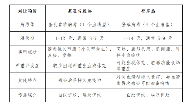 两者的病原体不同,但传播方式及临床症状相似,两者的主要的防控措施都是通过清理蚊媒孳生地、杀灭成蚊等方式阻断传播。