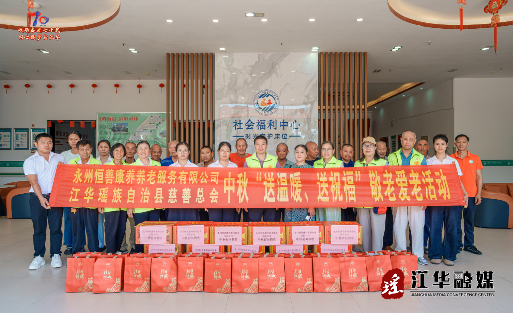 10月3日,中秋佳节来临之际,江华慈善总会携手永州恒善康养养老服务有限公司开展中秋“送温暖、送祝福”敬老爱老活动,为老人们送去节日关怀与浓浓暖意。江华政协二级巡视员、县慈善总会会长陈槐权参加活动。