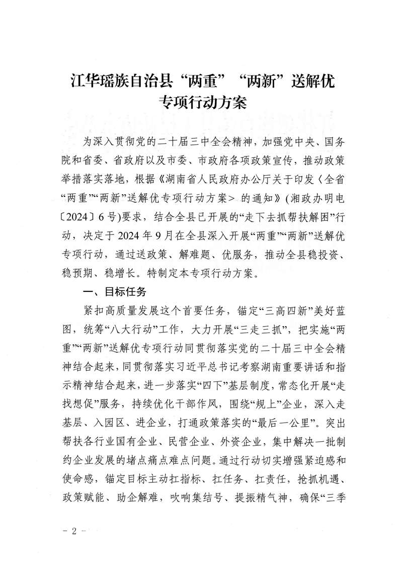 本级政策 | 江华瑶族自治县人民政府办公室关于印发《江华瑶族自治县“两重”“两新”送解优专项行动方案》的通知