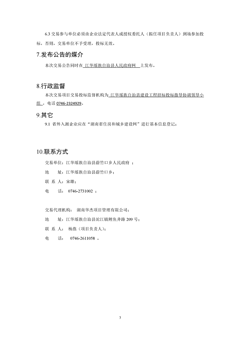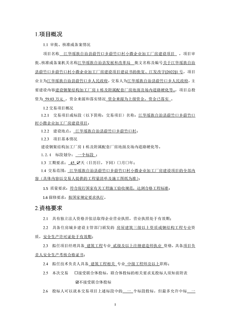 江华瑶族自治县蔚竹口乡蔚竹口村小微企业加工厂房建设项目交易公告