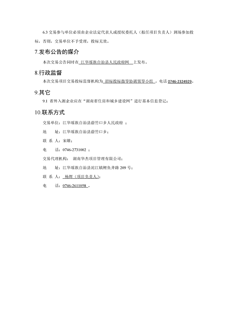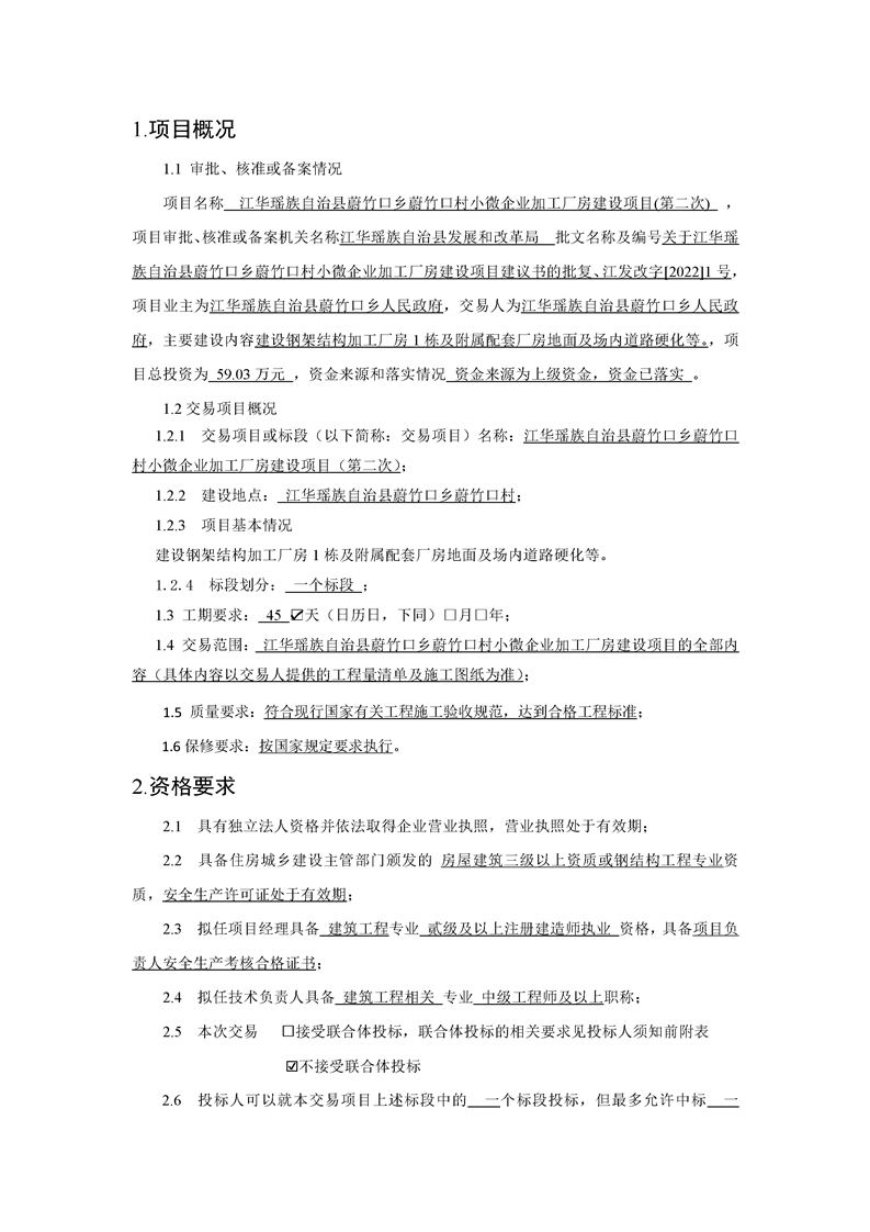 江华瑶族自治县蔚竹口乡蔚竹口村小微企业加工厂房建设项目(第二次)(交易项目名称及标段)交易公告