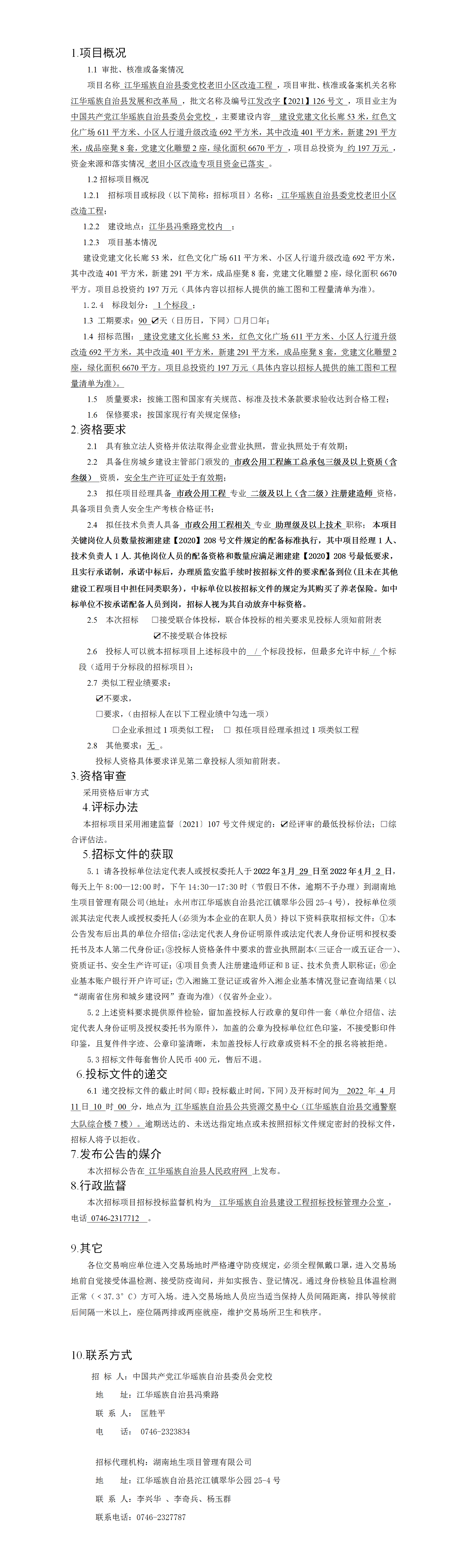 江华瑶族自治县委党校老旧小区改造工程招标公告