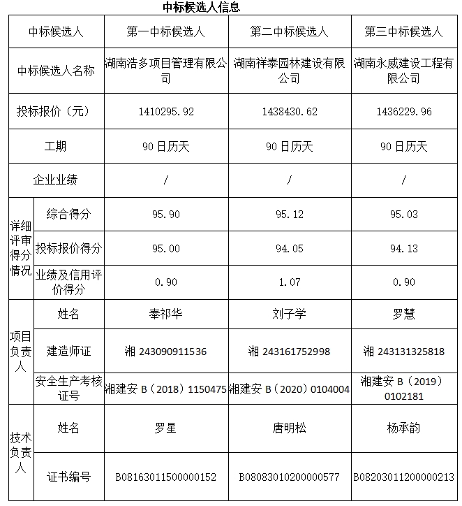 根据招标投标相关法律法规及招标文件的规定,沱江镇山寨村帮扶车间厂房建设项目评标工作已经结束。本项目资格审查采用开标后资格审查方式,评标办法采用湘建监督[2021]107号文件规定的“经评审的最低投标价法”。评标委员会推荐了以下3名中标候选人(排序),现将相关信息予以公示。公示期:公示期为3个工作日,公示期内如对中标候选人无异议,公示期满后,招标人将确定第一中标候选人为中标人。