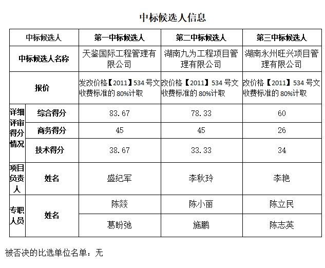 根据招标投标相关法律法规及比选文件的规定,水口移民新镇长鼓楼建设项目招标代理机构比选评标工作已经结束。本项目资格审查采用开标后资格审查方式,评标办法采用“综合评估法”。评标委员会推荐了以下3名中标候选人(排序),现将相关信息予以公示。公示期:公示期为3个工作日,公示期内如对中标候选人无异议,公示期满后,比选人将确定第一中标候选人为比选中标人。