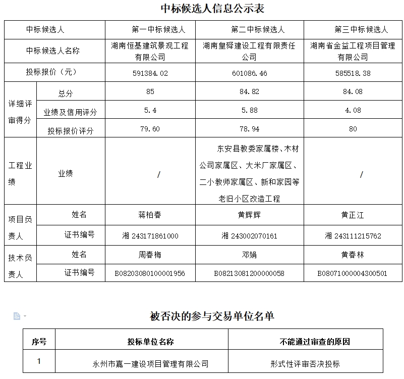 根据招标投标相关法律法规及招标文件的规定,2021年江华县老旧小区改造项目路灯工程评标工作已经结束,本项目于2022年05月12日10时00分在江华瑶族自治县重点项目服务中心(江华县交通警察大队综合楼7楼)开标、评标,评标办法采用“经评审的最低投标价法”,资格审查方式为资格后审。评标委员会推荐了以下三名中标候选人,现将相关信息予以公示。