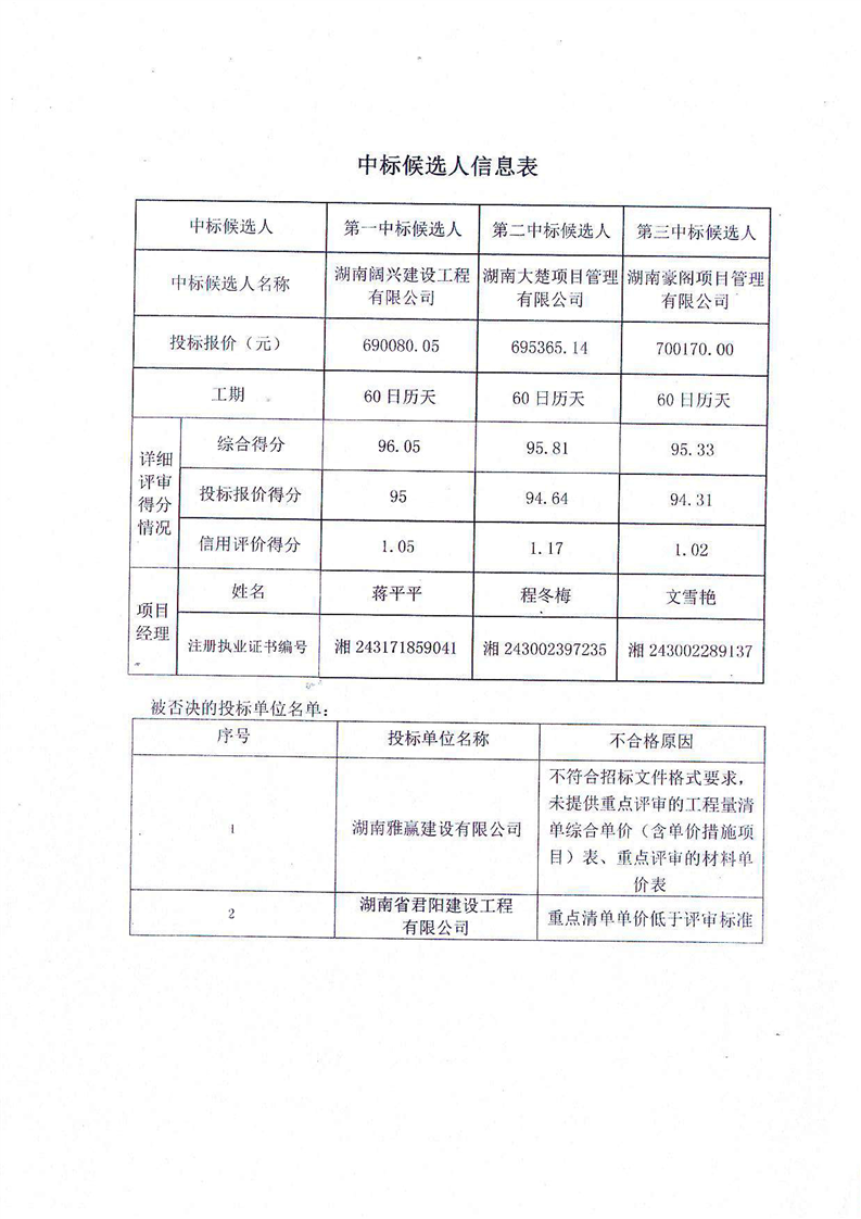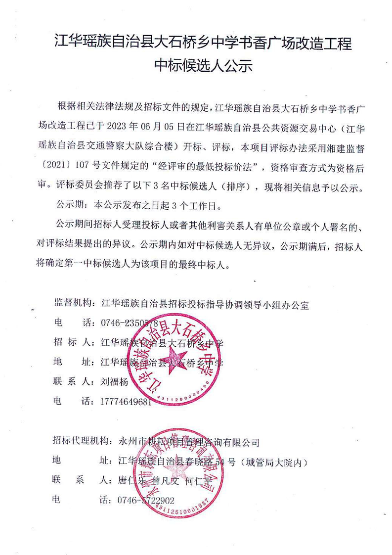 江华瑶族自治县大石桥乡中学书香广场改造工程中标候选人公示