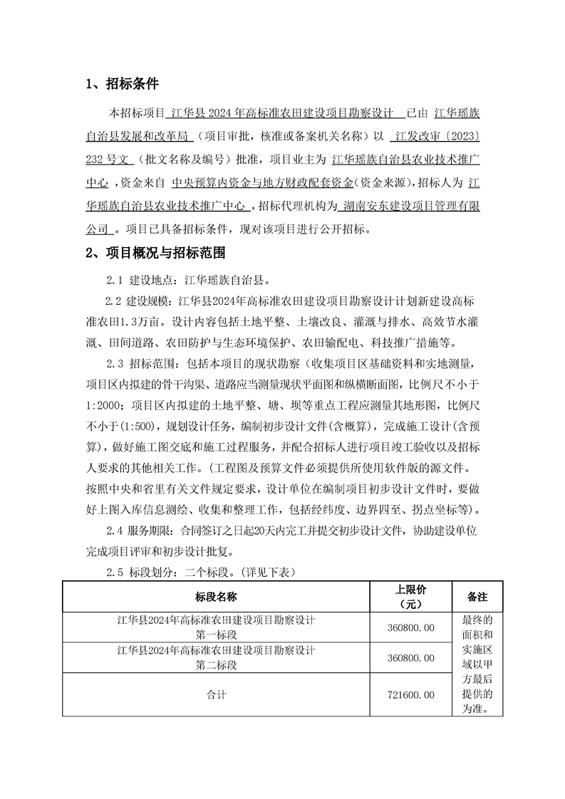 江华县2024年高标准农田建设项目勘察设计招标公告