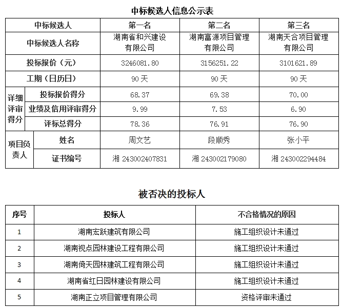 根据招标投标相关法律法规及招标文件的规定,滨江大道出让82宗地块基础设施改造项目评标工作已经结束。本项目评标办法采用湘建监督〔2024〕33 号文件规定的“经评审的最低投标价法”,评标委员会推荐了以下3名中标候选人(排序),现将相关信息予以公示。