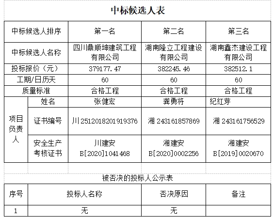根据招标投标相关法律法规及招标文件的规定,涔天河镇会合村谢家湾、周家寨自然村污染源治理工程招标评标工作已经结束,本招标项目采用经评审的最低投标价法的评标办法,评标委员会推荐了以下3名中标候选人(排序),现将相关信息予以公示。